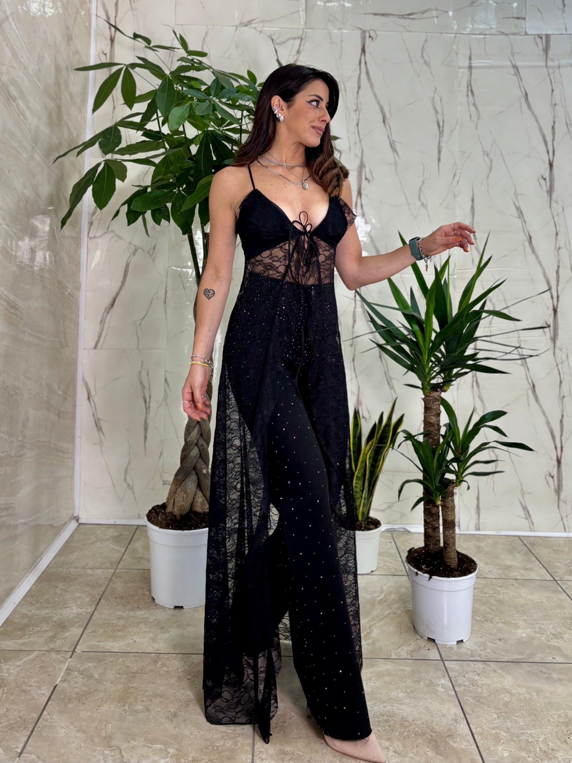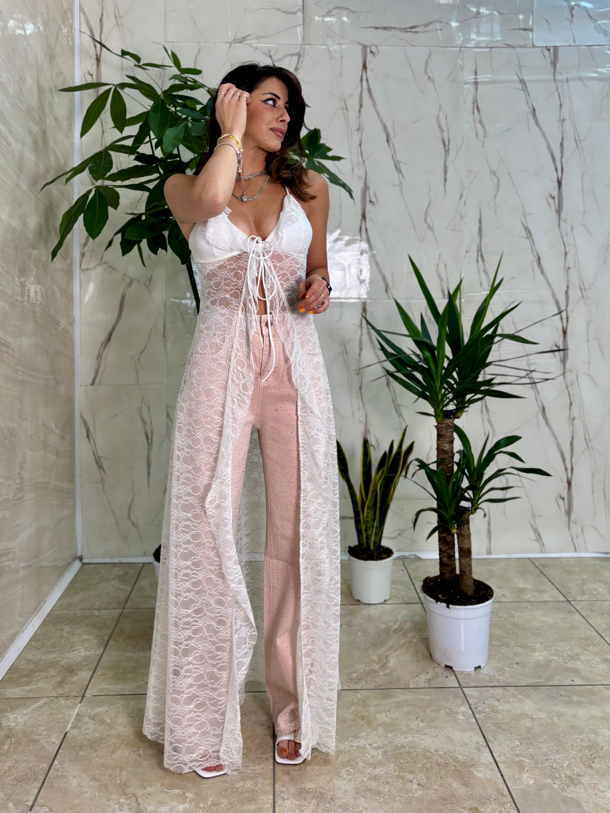 CROP lungo in merletto con incrocio sul retro abbottonatura laccio frontale tg U veste fino ad una 44