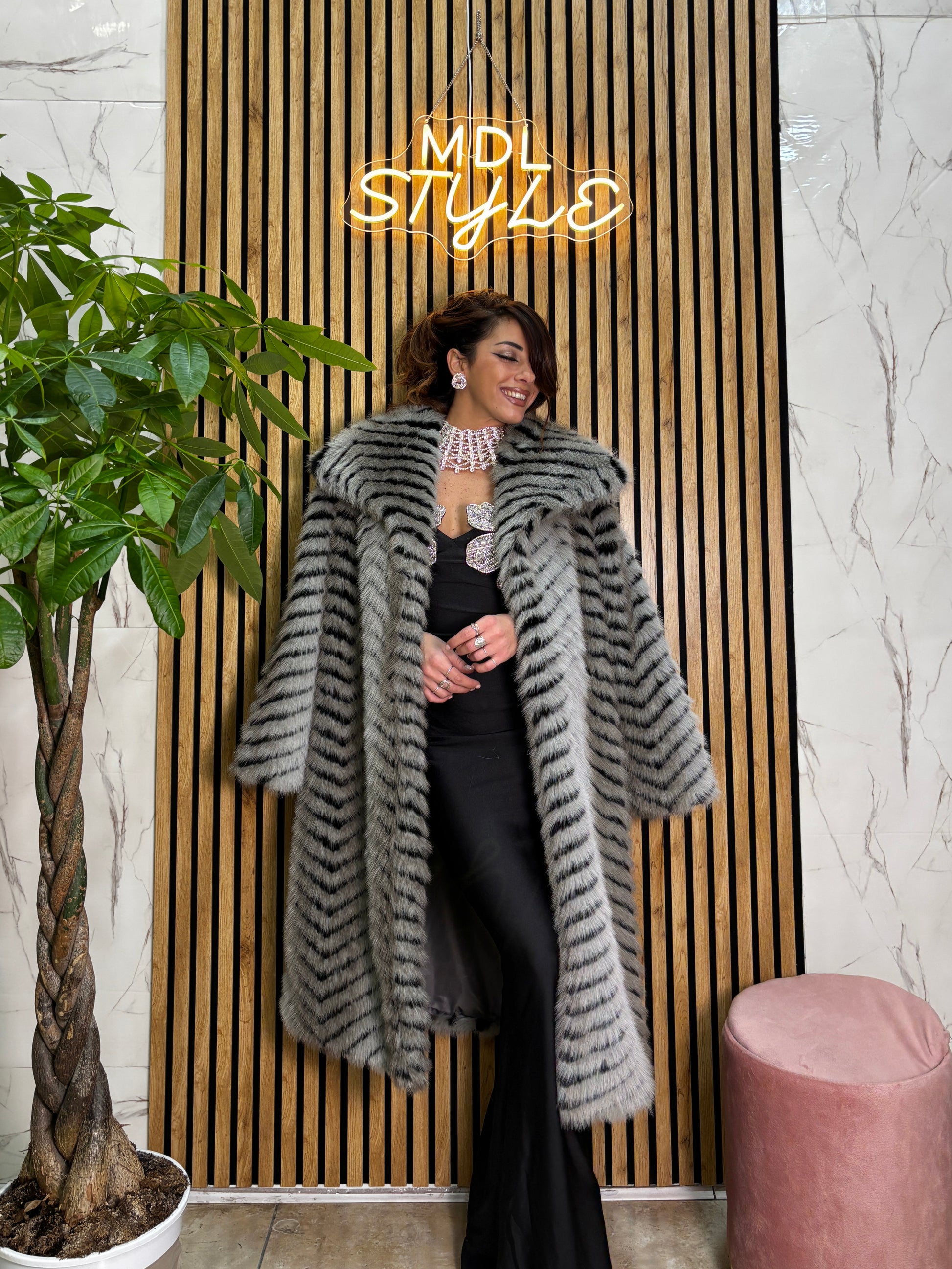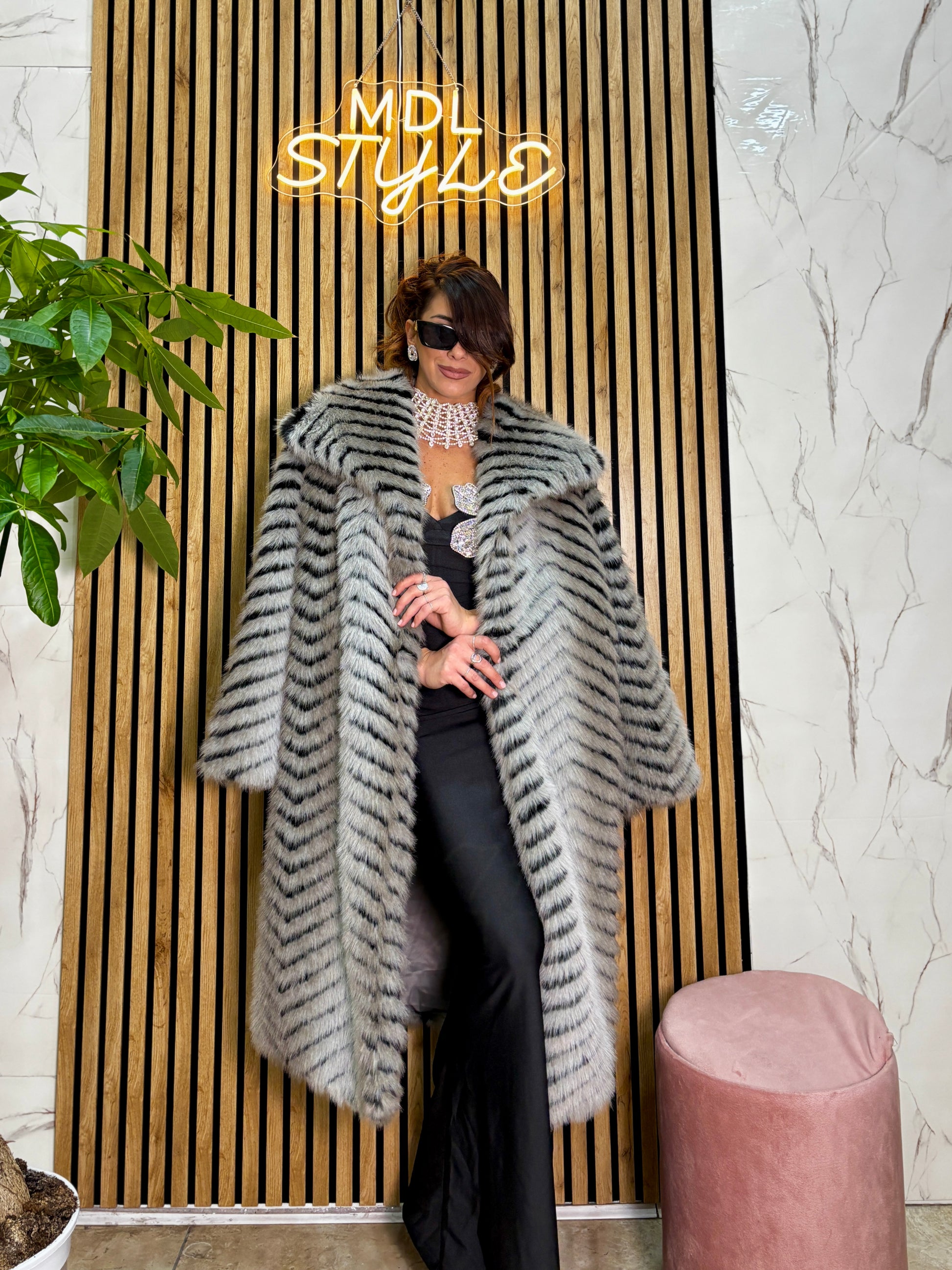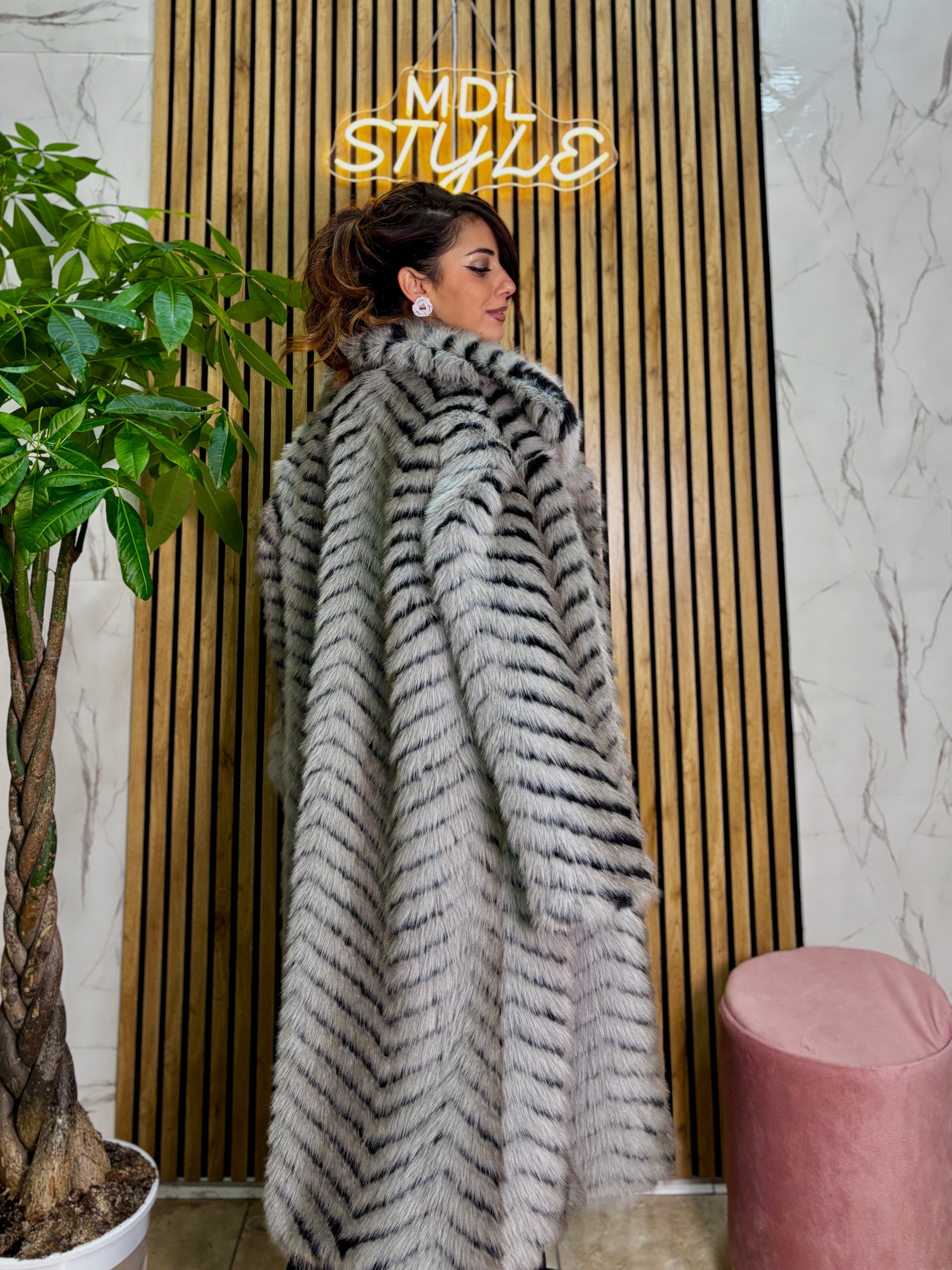 Pelliccia lunga fantasia animalier tg U veste fino ad una 44-46