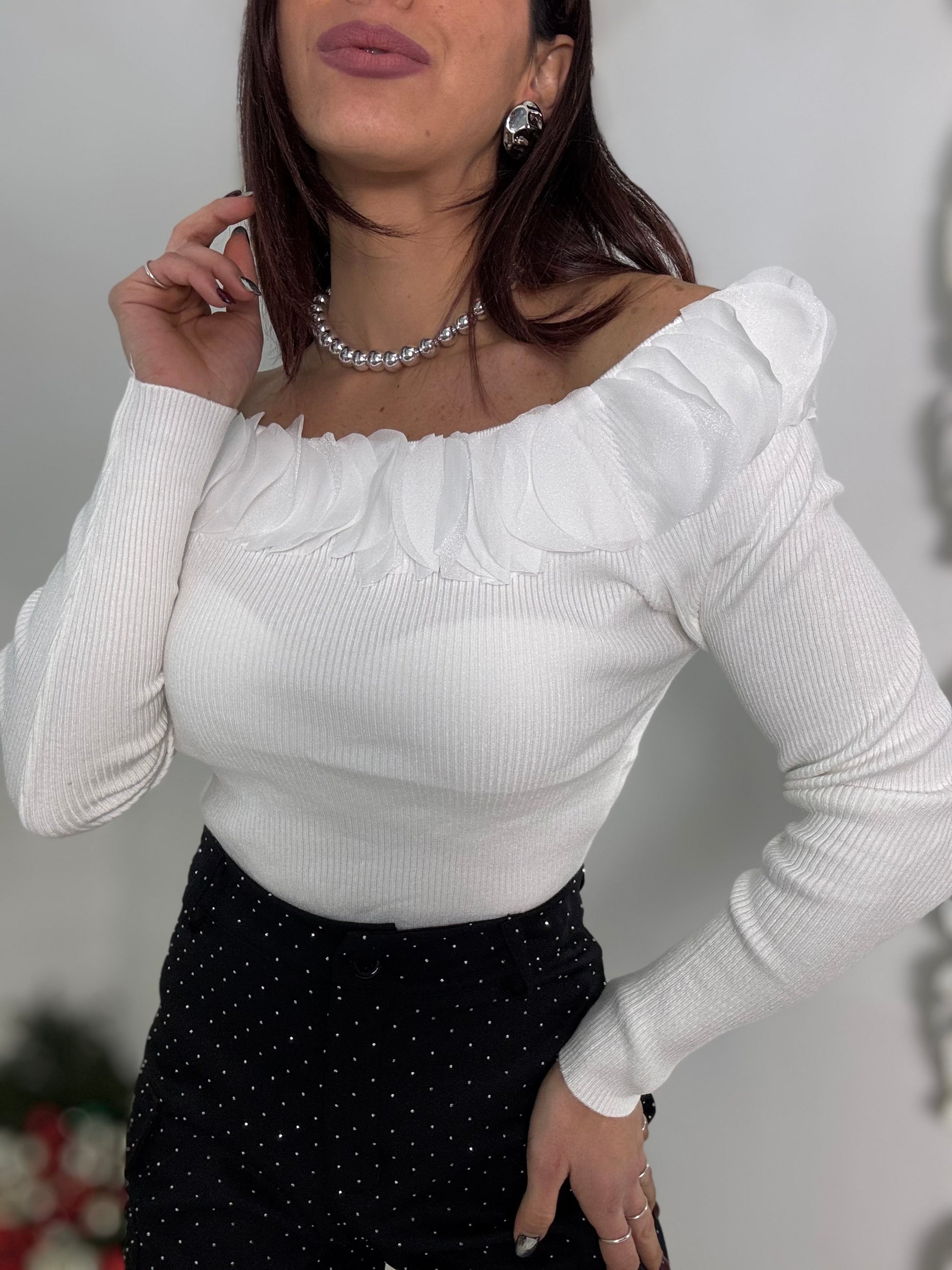 Maglia a costine lunghezza regolare con scollo leggermente a barca molto comodo