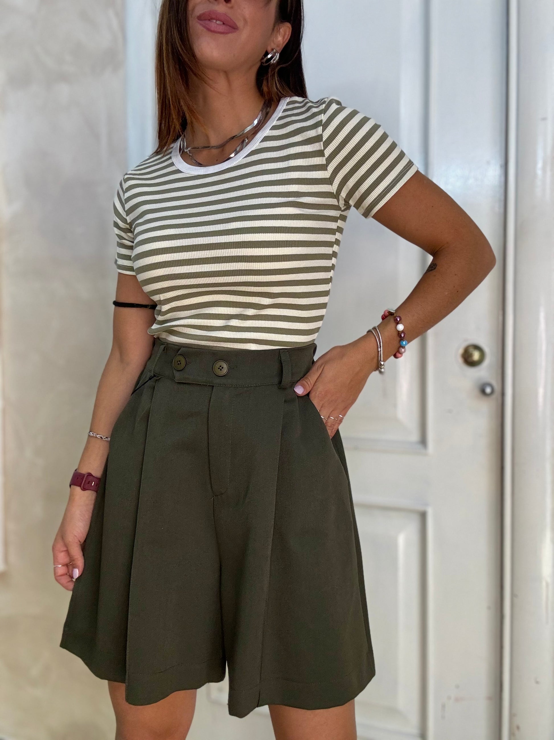 Maglia a costine manica tre quarti lunghezza regolare fantasia strisce