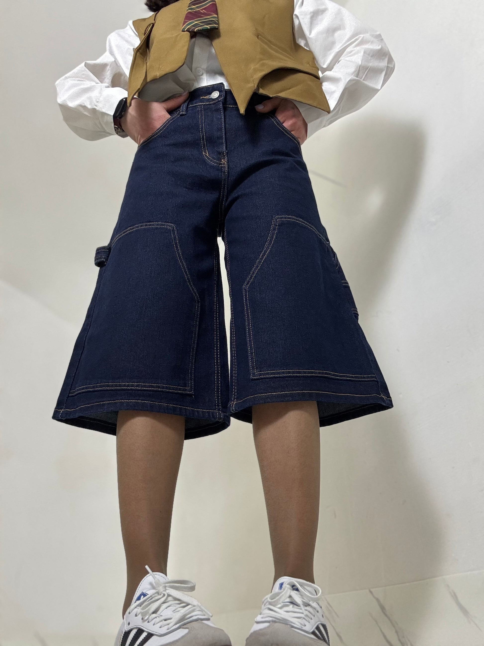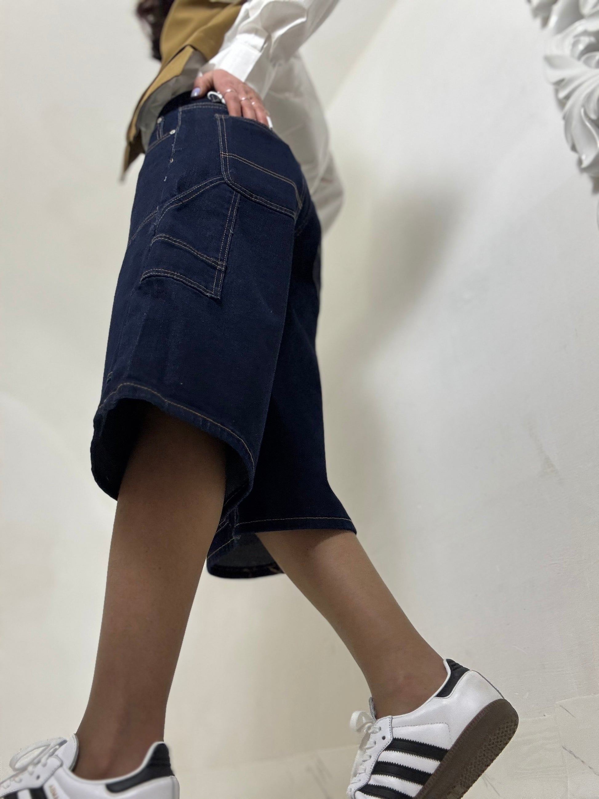 Mini baggy strutturato lavaggio blu scuro semi elastico