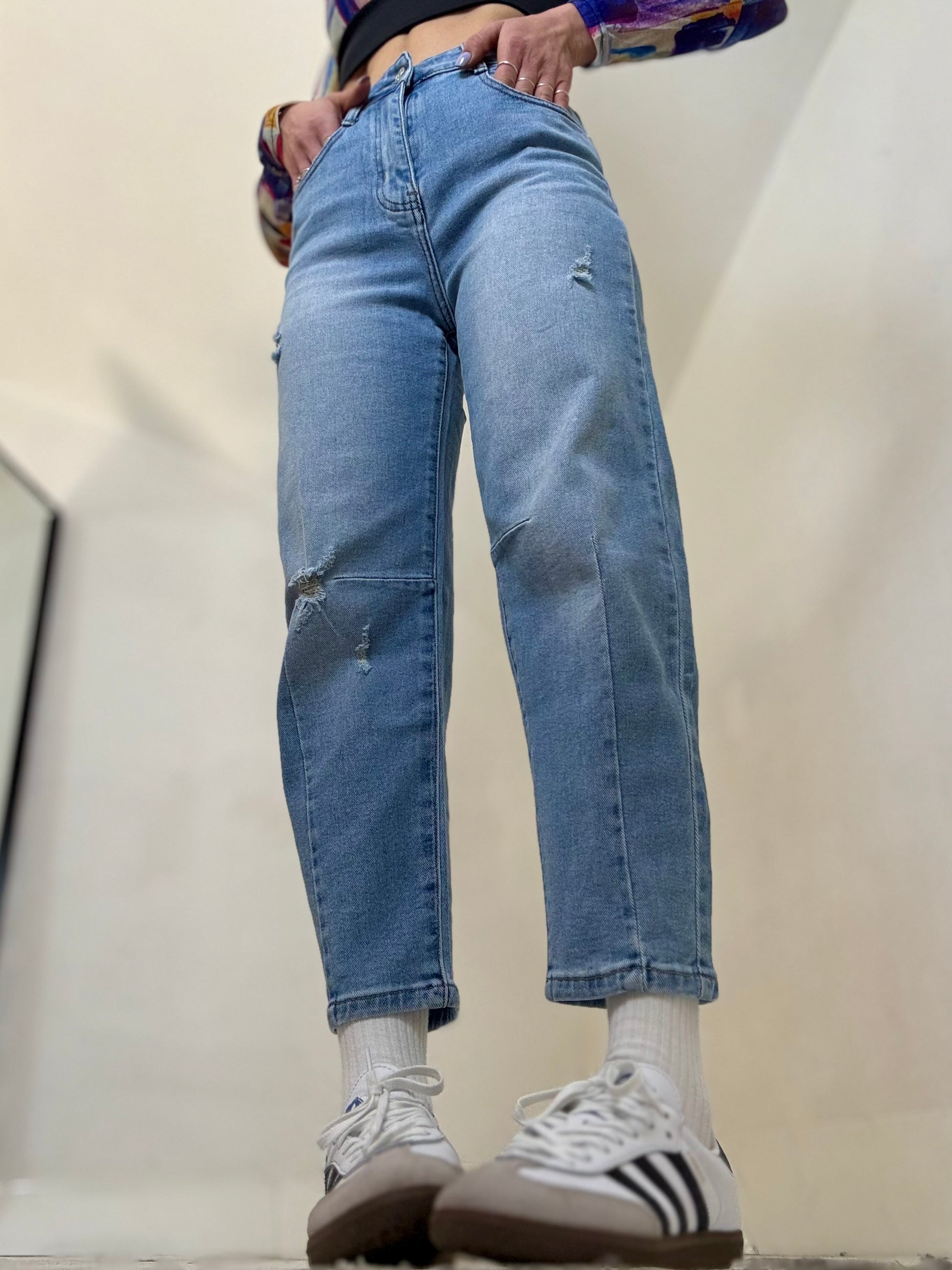 Mini ballon in denim tessuto semi elastico