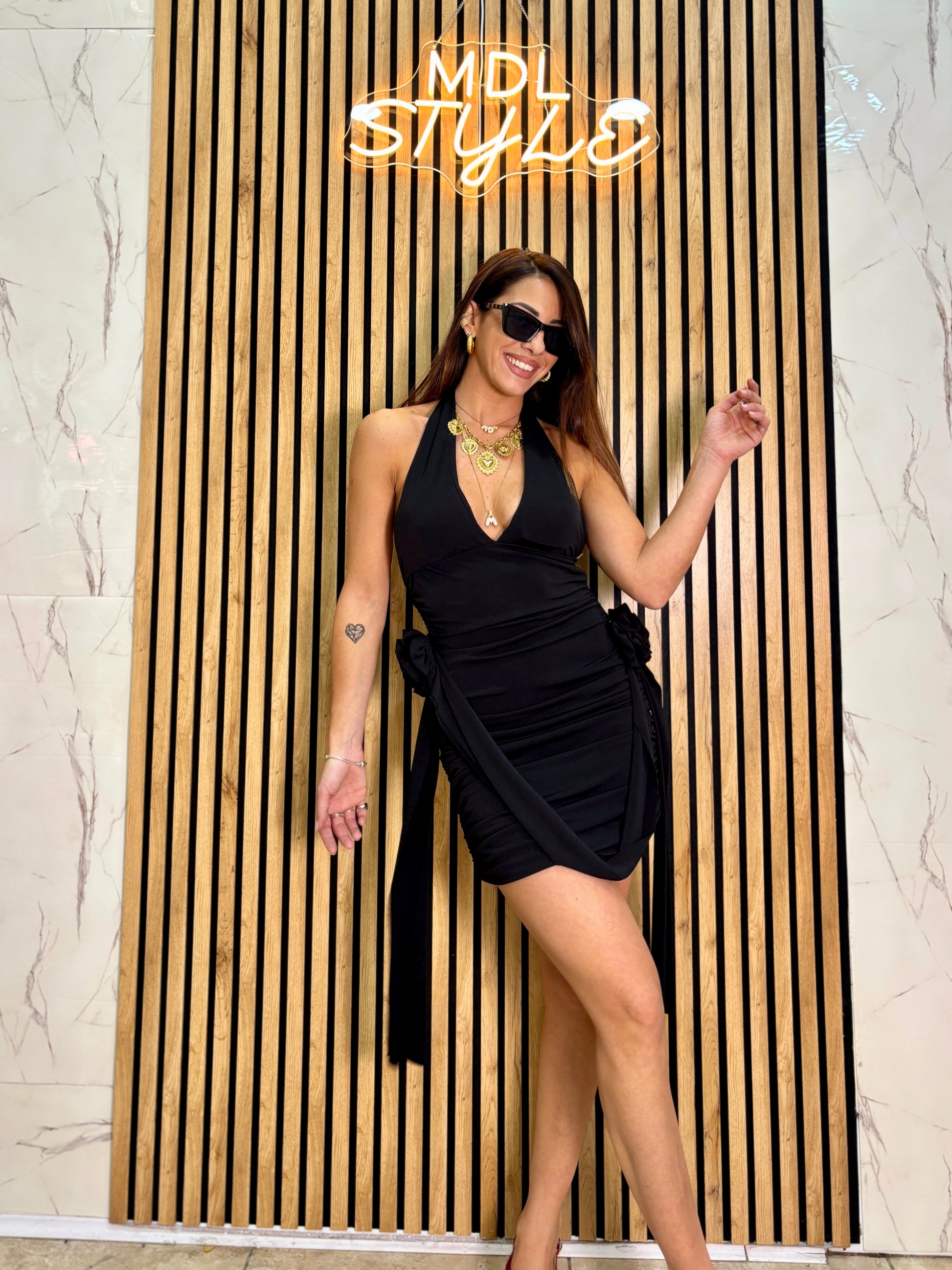 Mini Dress con dettaglio frontale e rose laterali tg U veste fino ad una 44
