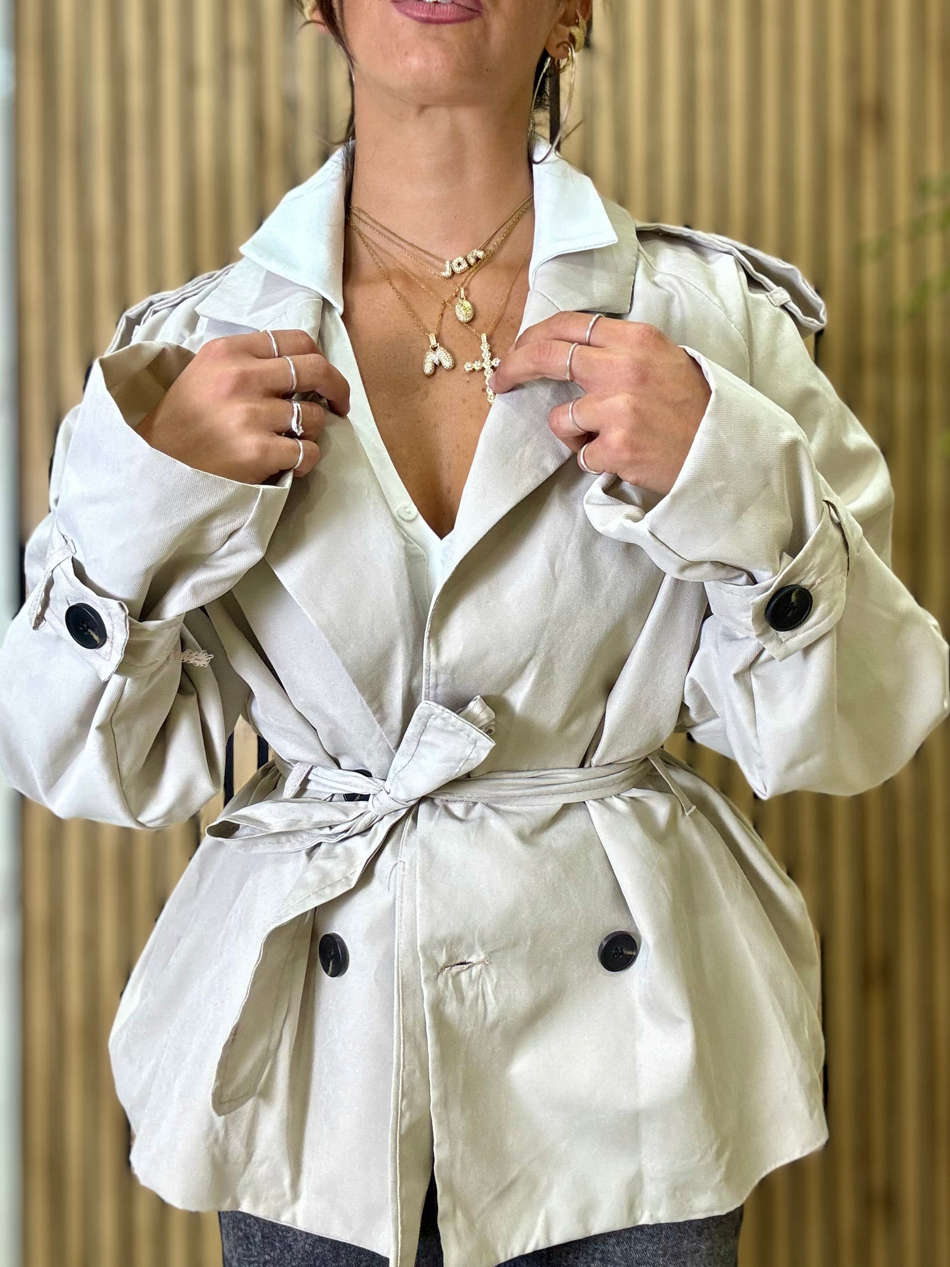 Mini trench in cotone strutturato con chiusura bottoni e cinturino tg U veste fino ad una 46