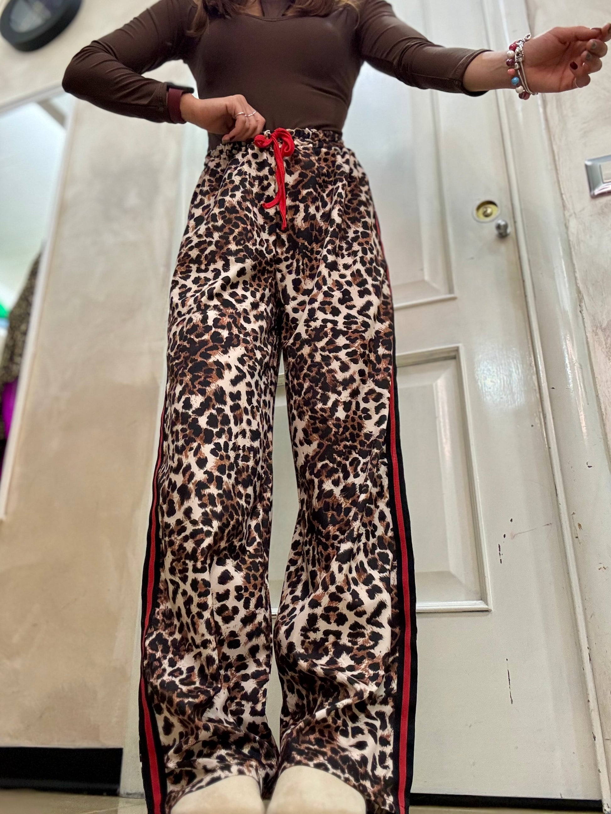Pantalone a palazzo tessuto leggero con elastico in vita colore a contrasto