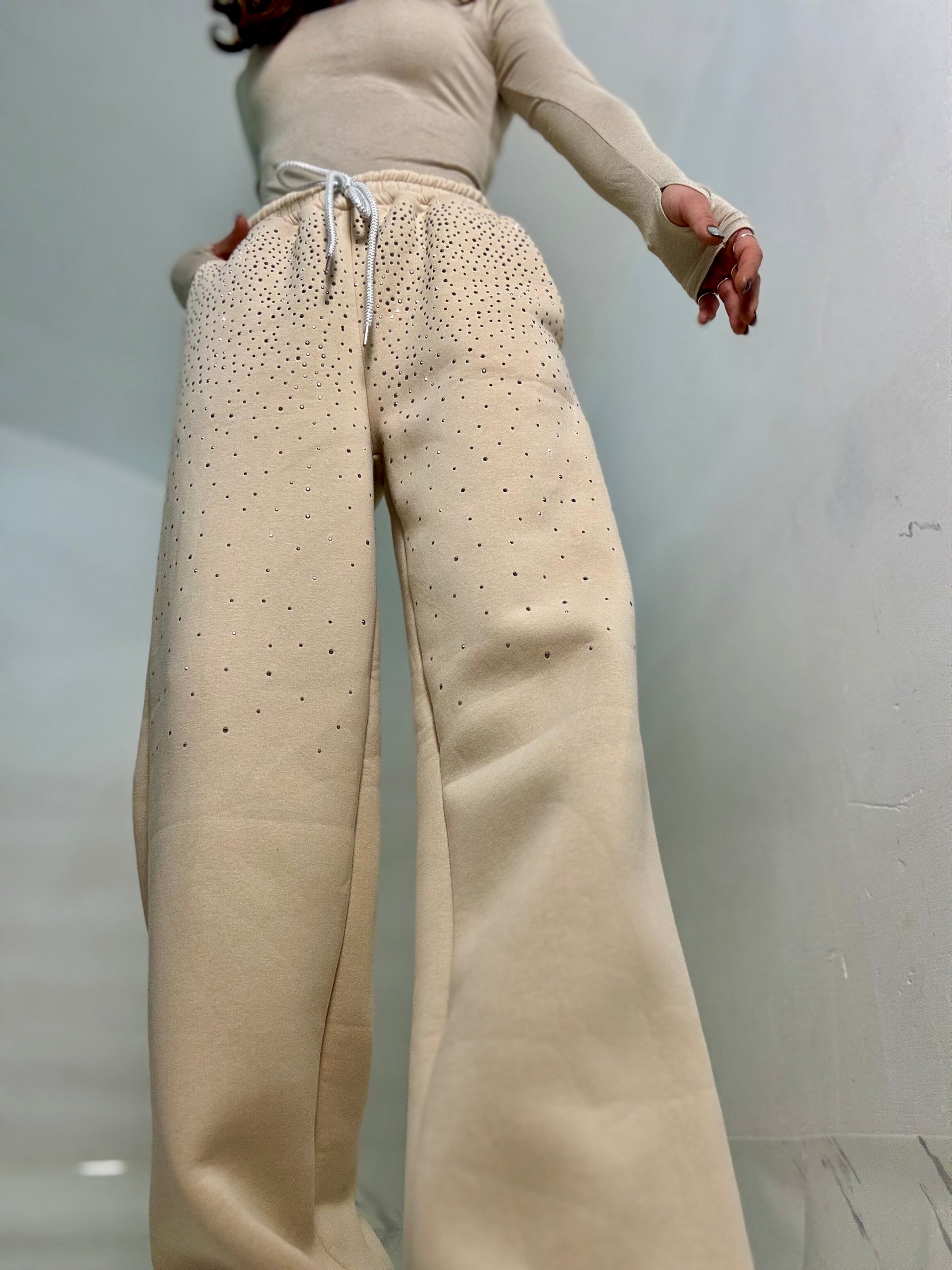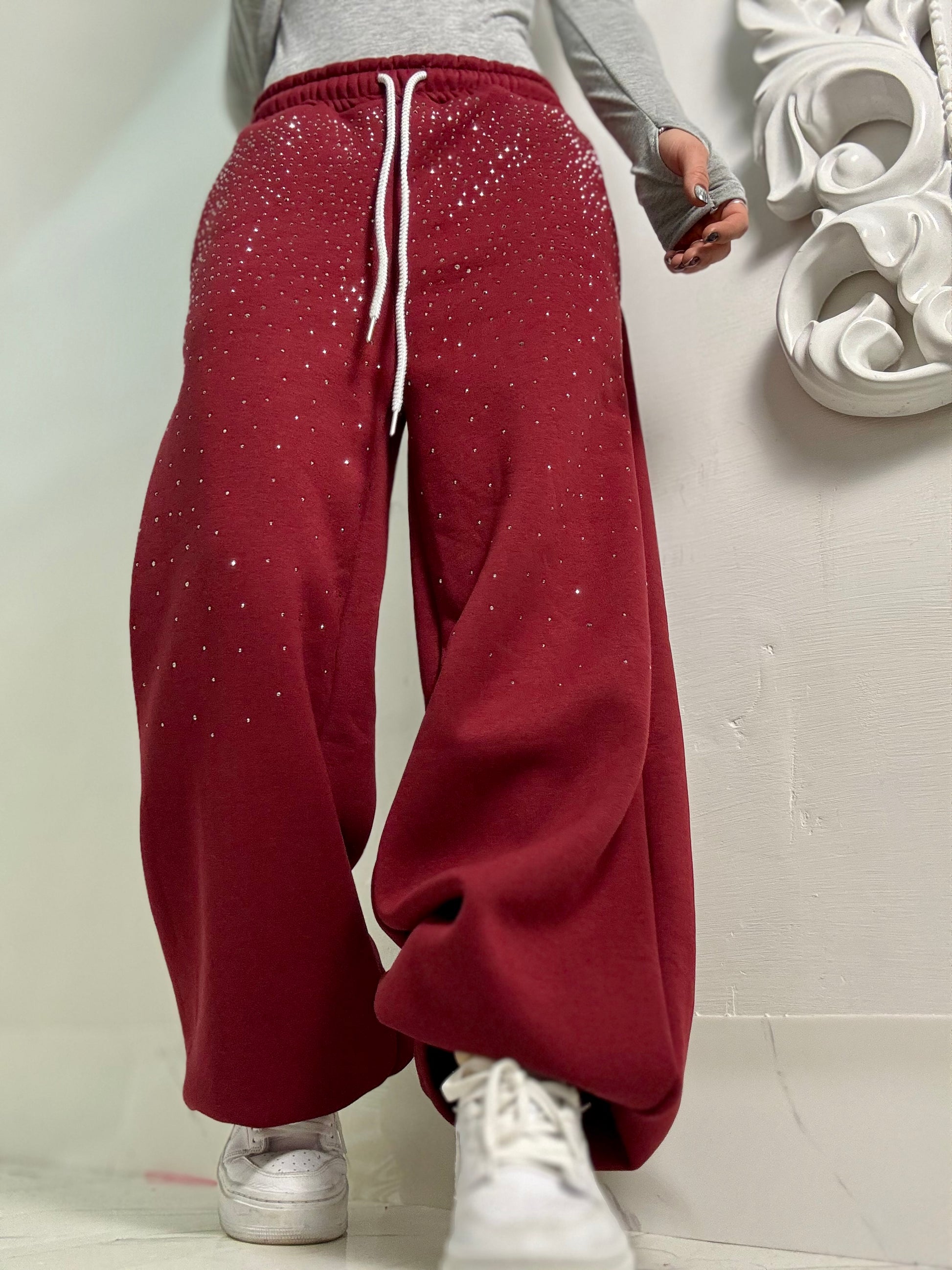 PANTATUTA imbottito modello a palazzo vita alta con dettagli strass sulla parte frontale vestibilità top fino ad una 46