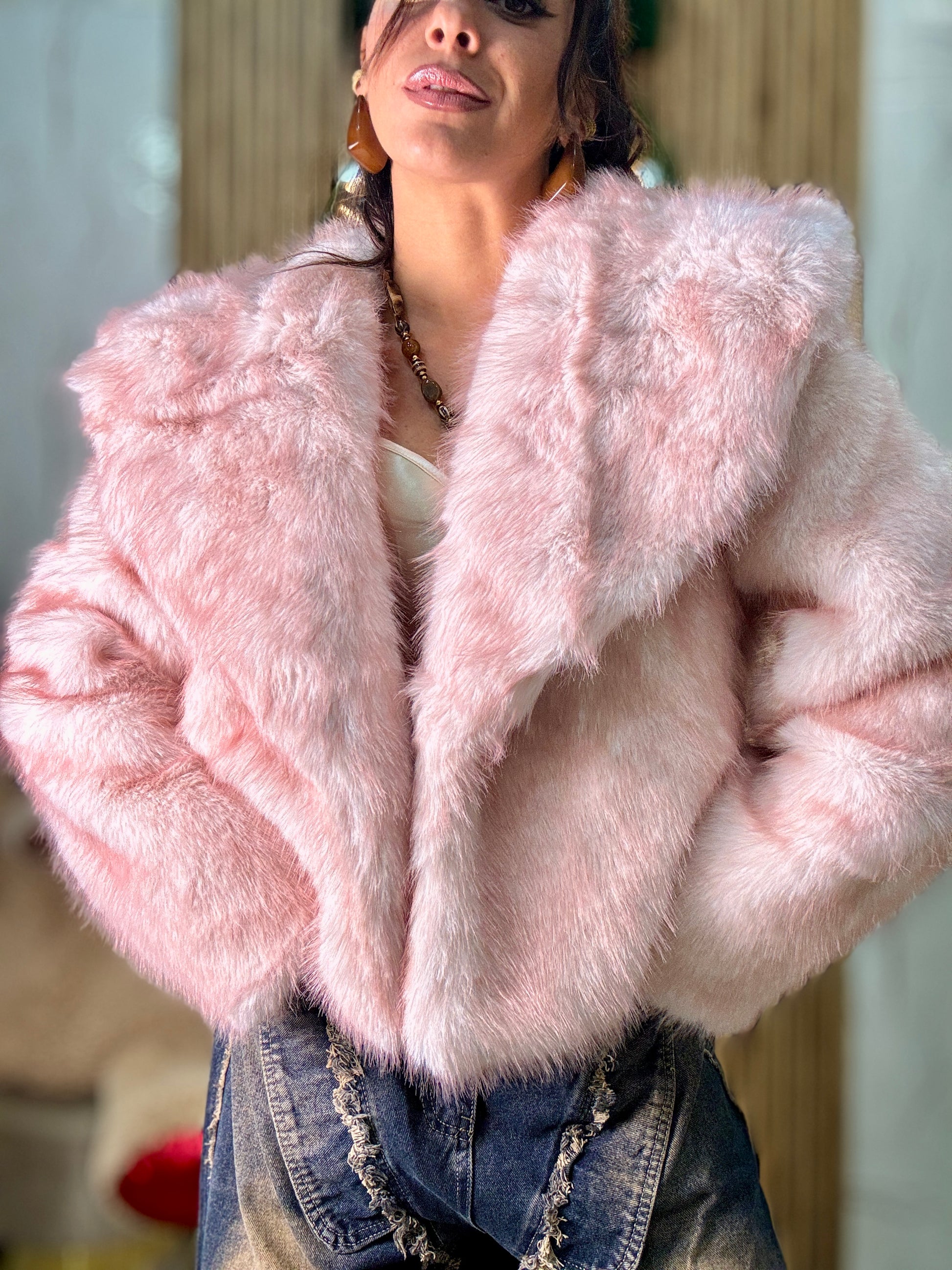 Eco Pelliccia Rosa delicato, taglia unica, veste fino ad una 46