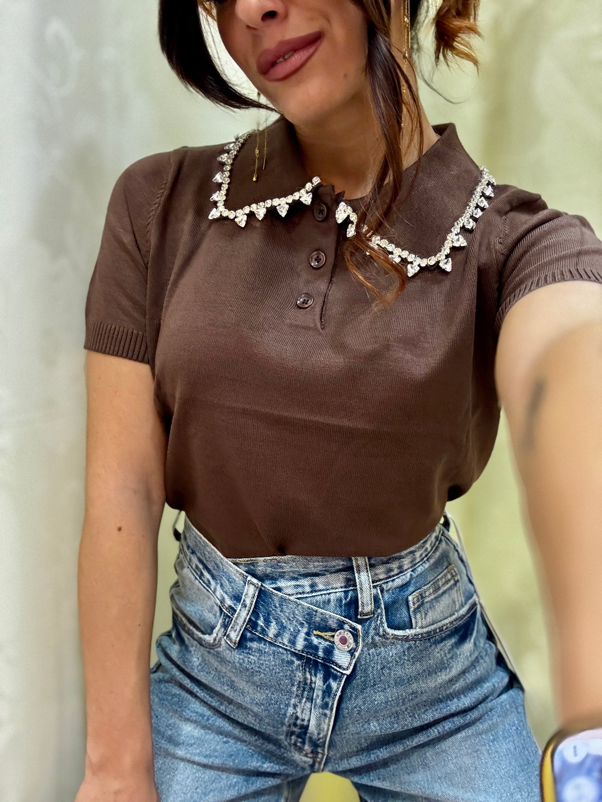 Polo in filo lunghezza regolare dettagli sul colletto, taglia unica, veste fino ad una 44