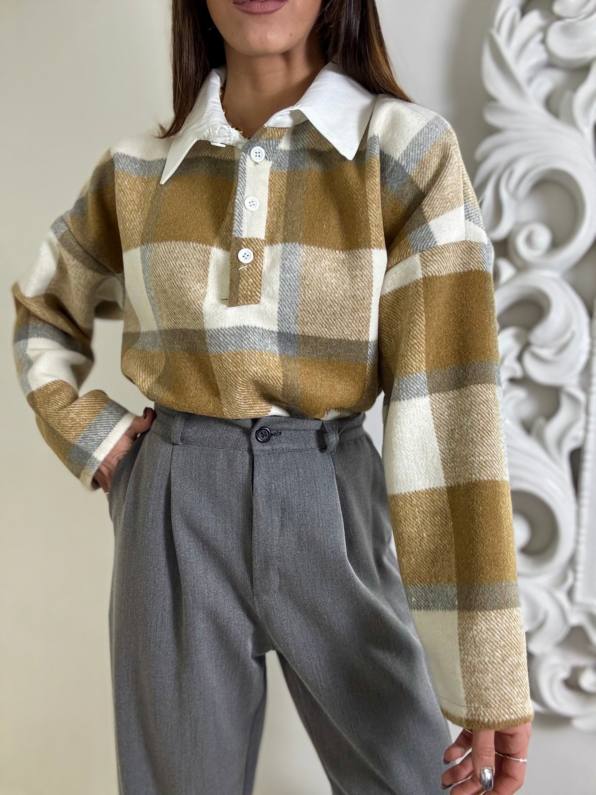 Polo in flanella chiusura superiore con bottoni collo a camicia veste fino ad una 44