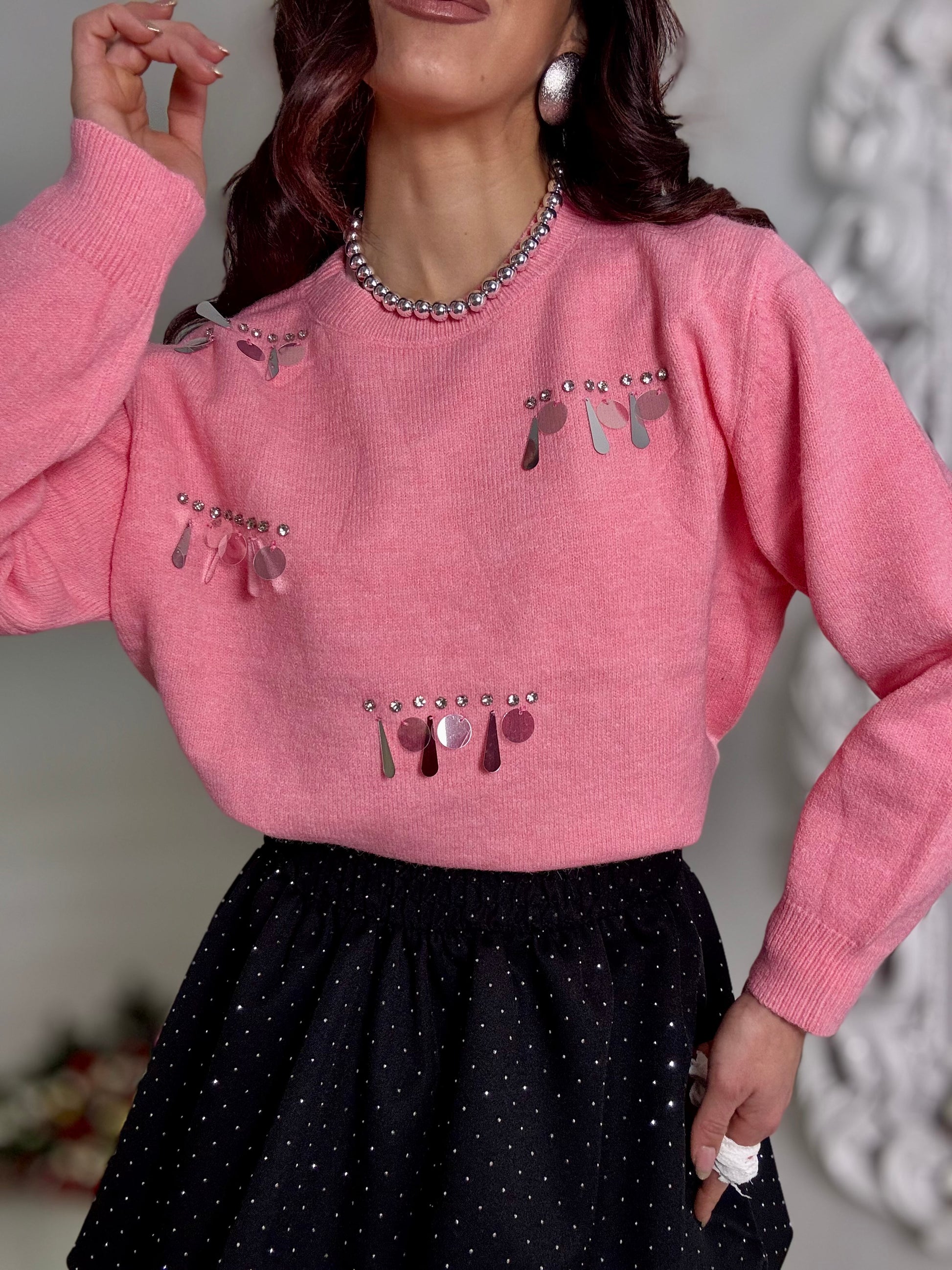 Pull lunghezza media con applicazione di paillettes veste fino ad una 46