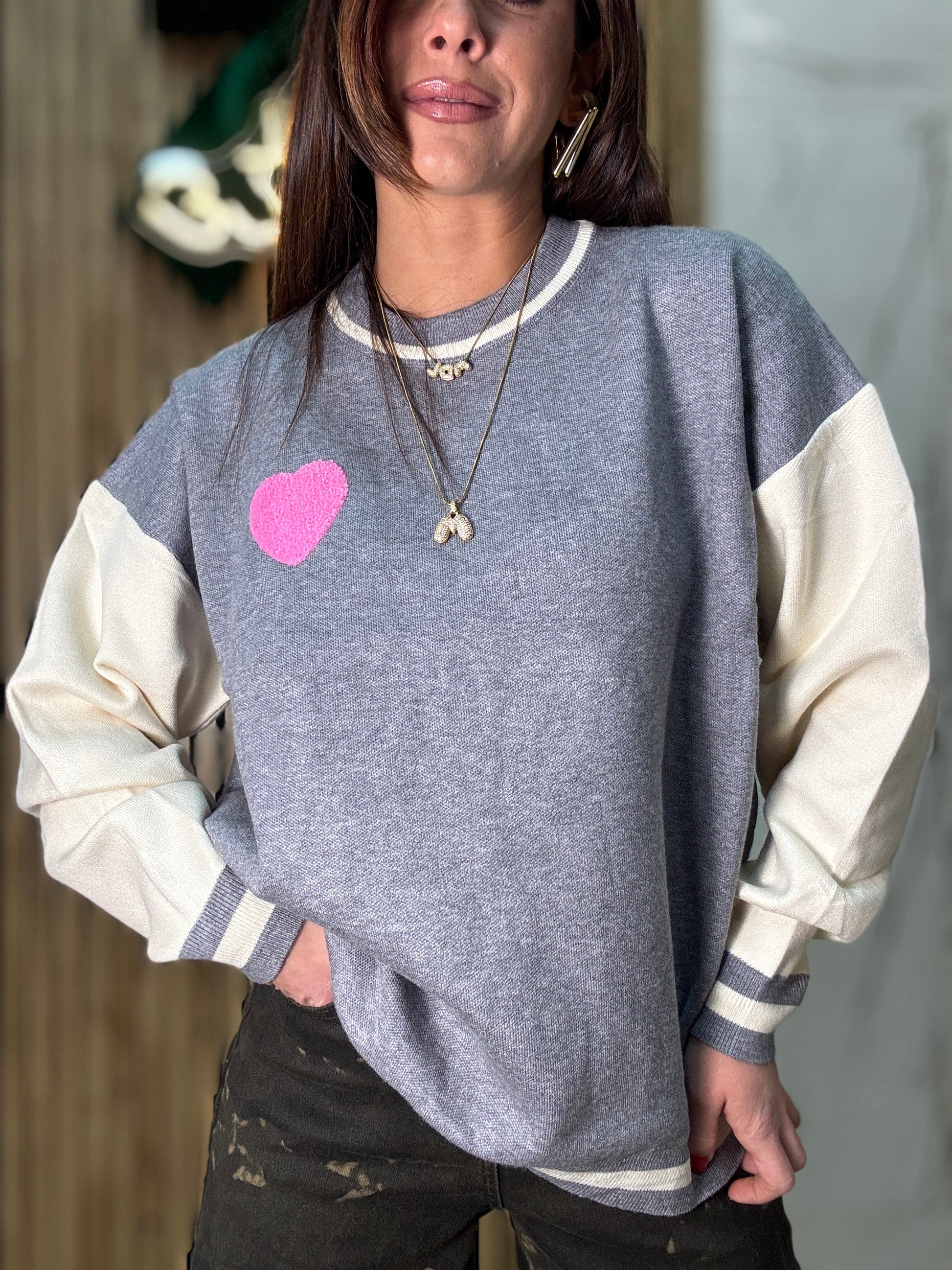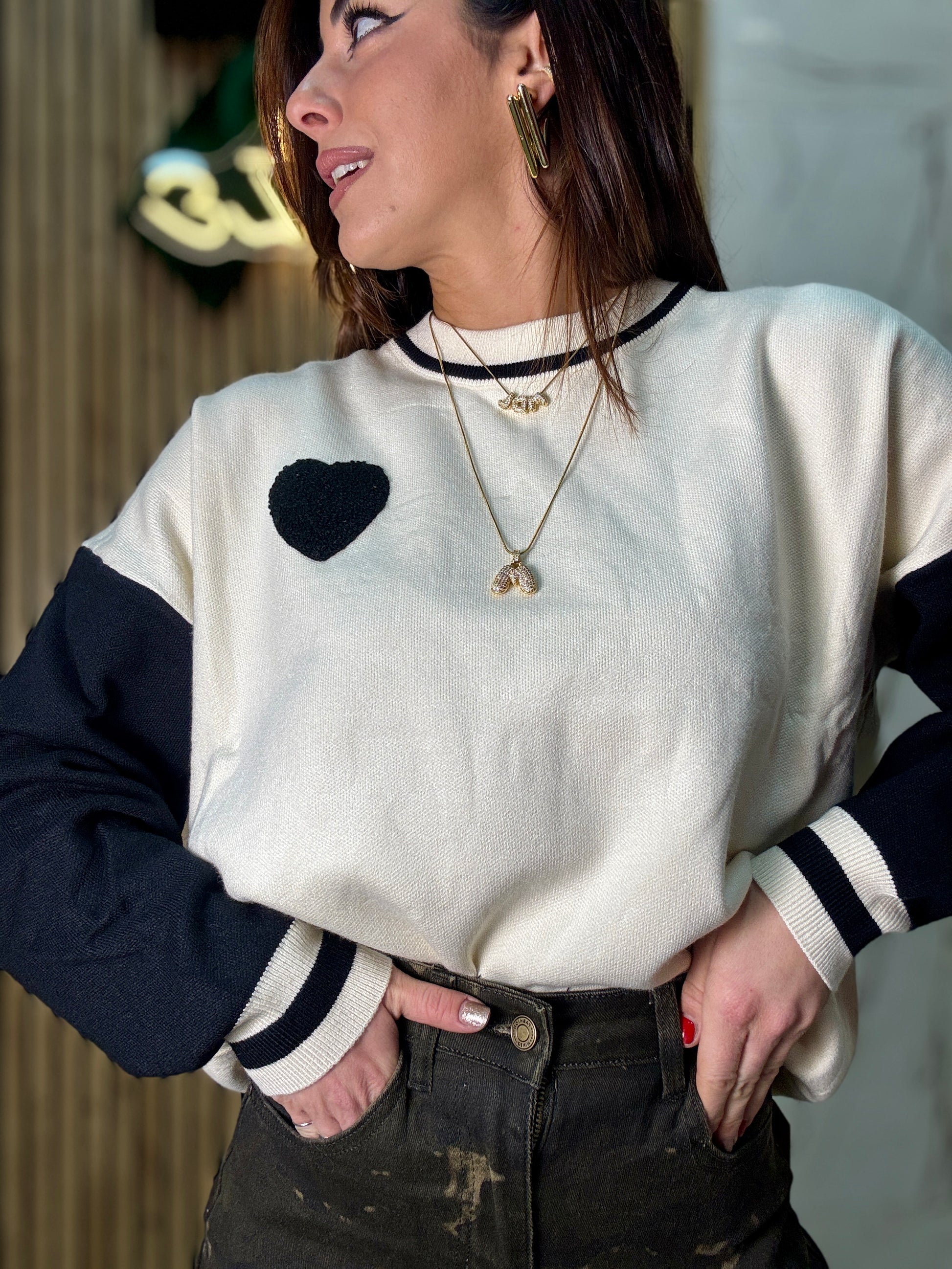 Pull bicolore con stampa sul retro modello regolare tg U veste fino ad una 46