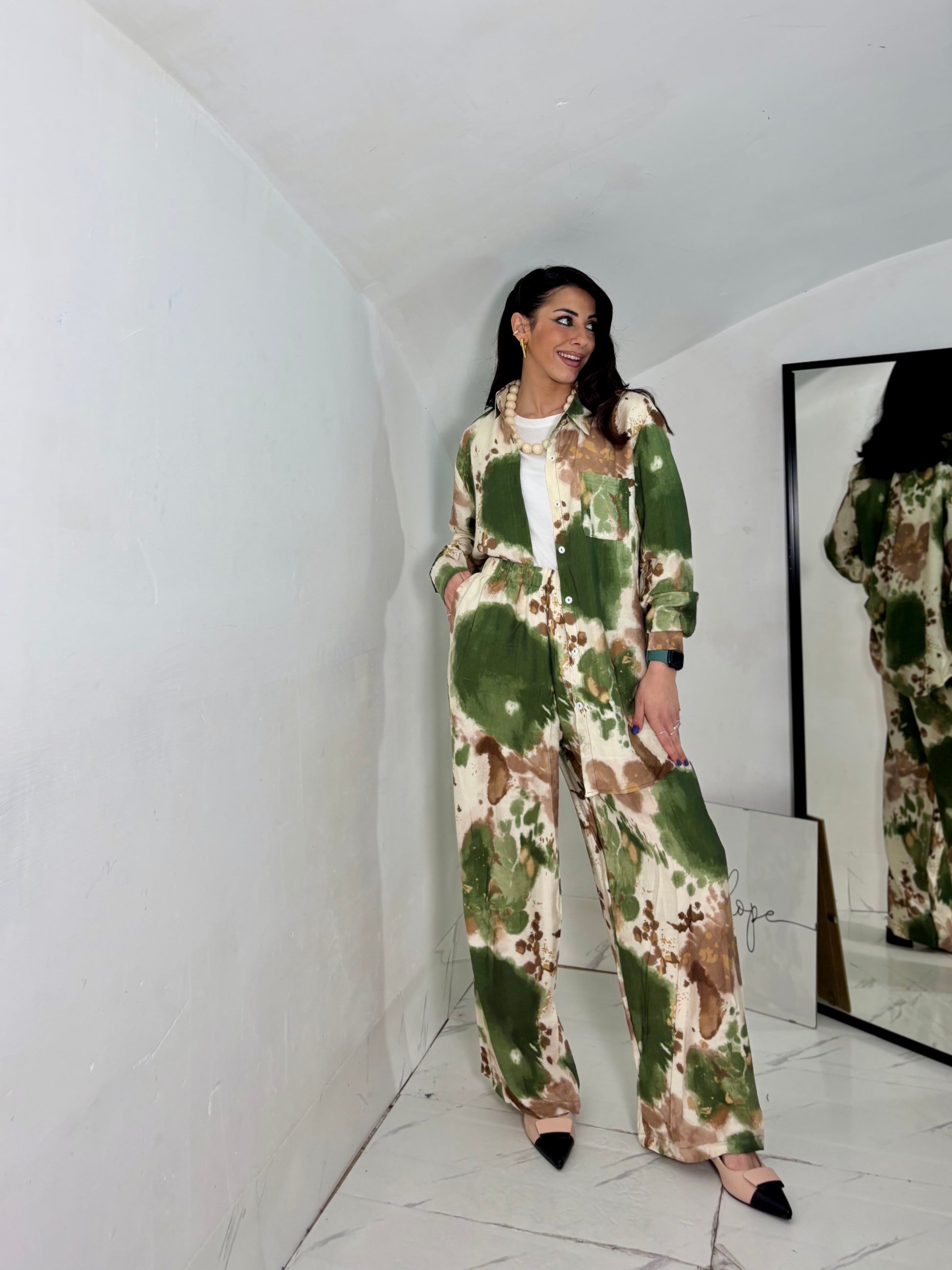 Set in cotone , effetto slavato composto da camicia lunghezza regolare , e pantalone con elastico in vita