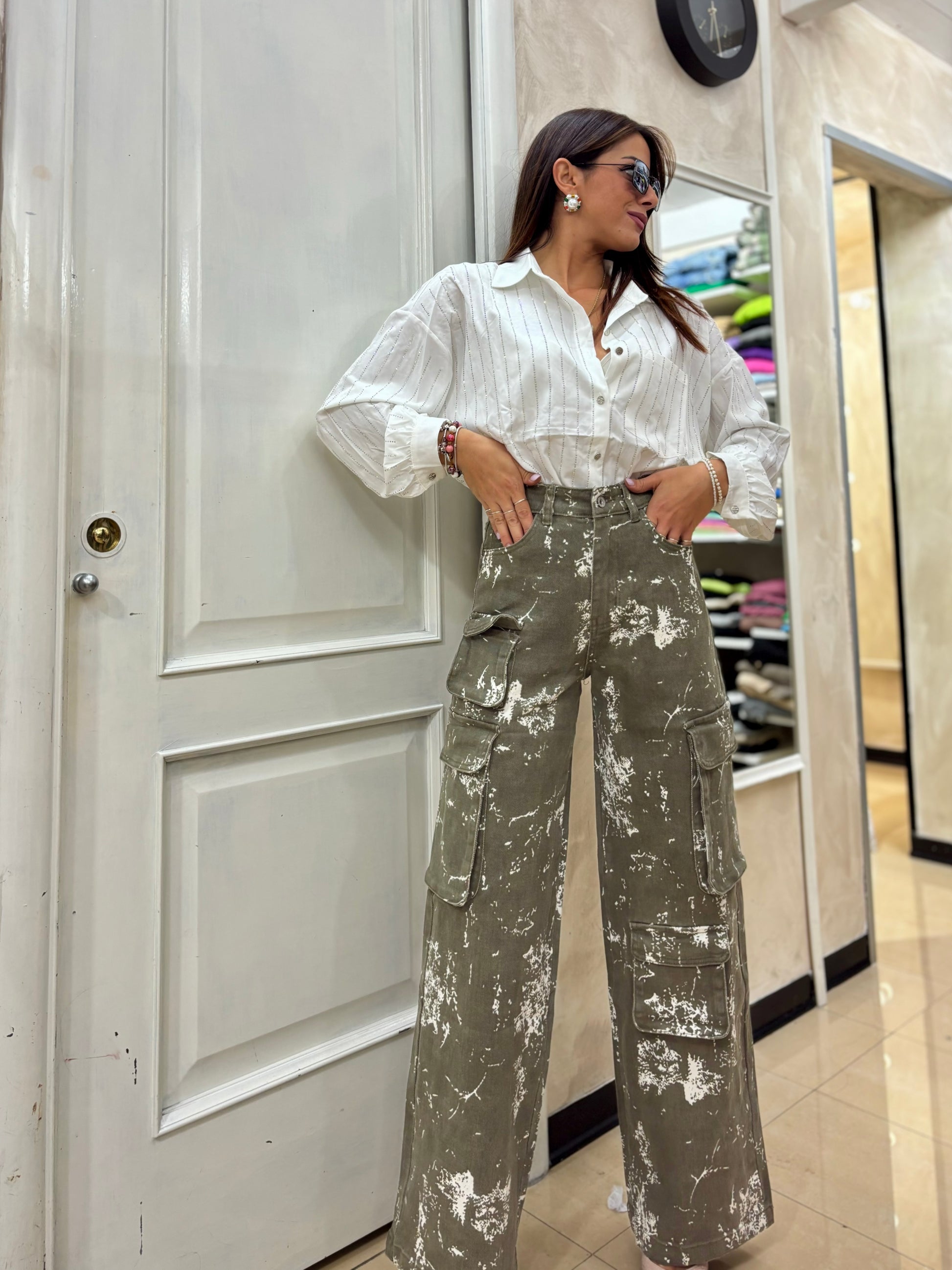 Jeans cargo Con tasconi laterali gamba diritta tessuto elastico