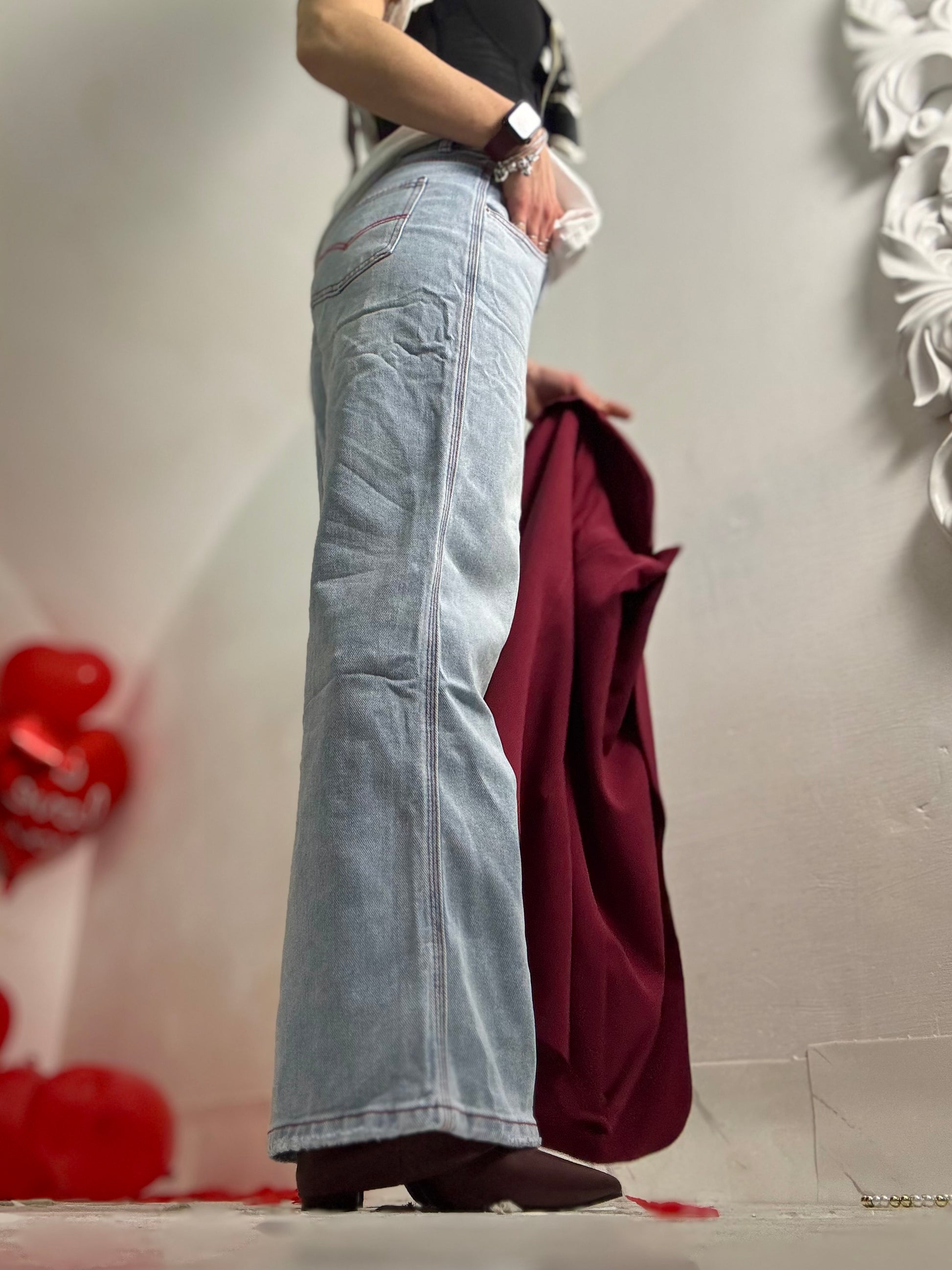 Jeans modello diesel con dettagli cuciture colore a contrasto rosso vestibilità elastici