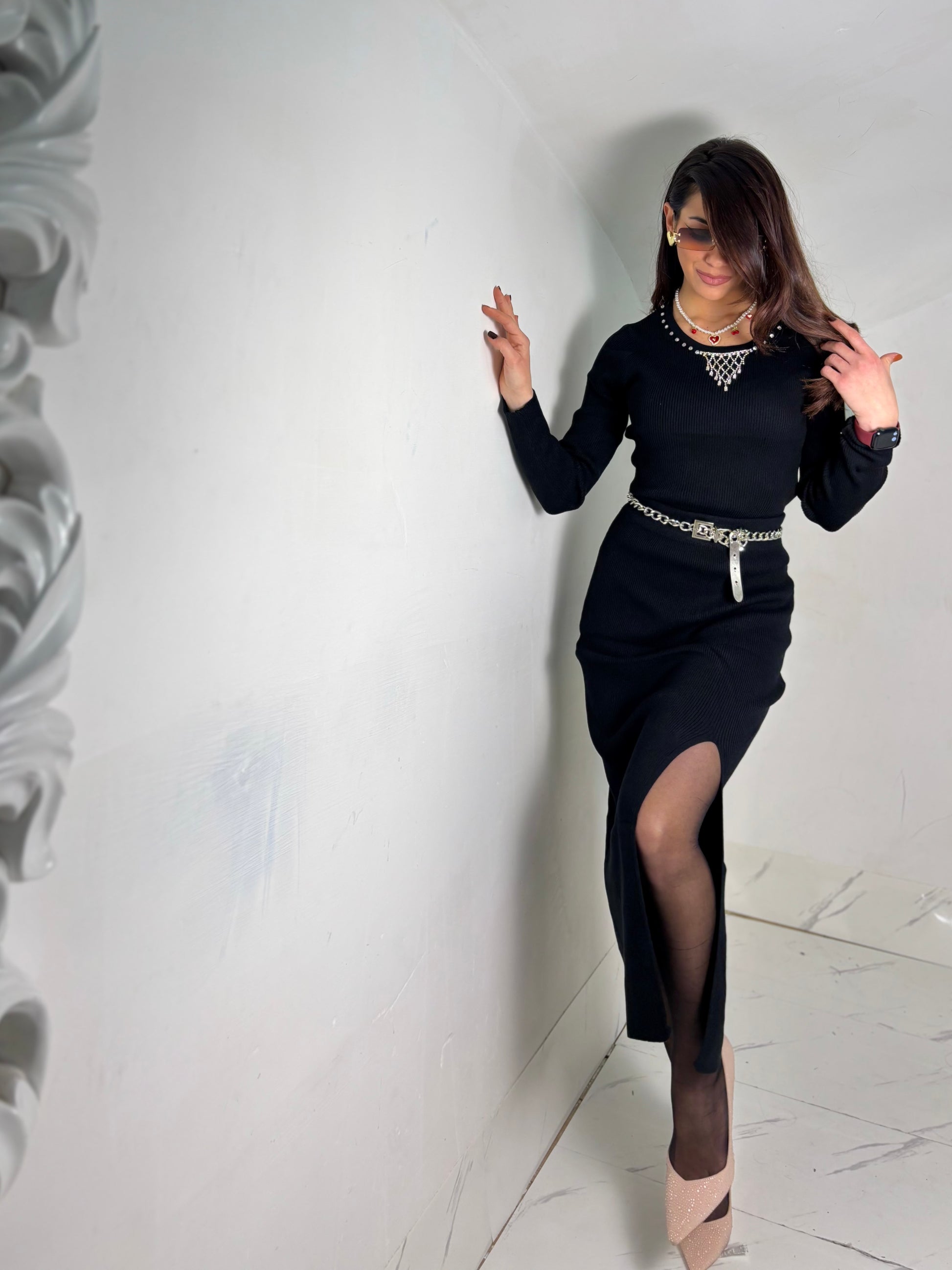 Set composto da gonna lunga con pacchetto laterale e maglia lunghezza regolare dettagli sul girocollo veste fino ad una 46