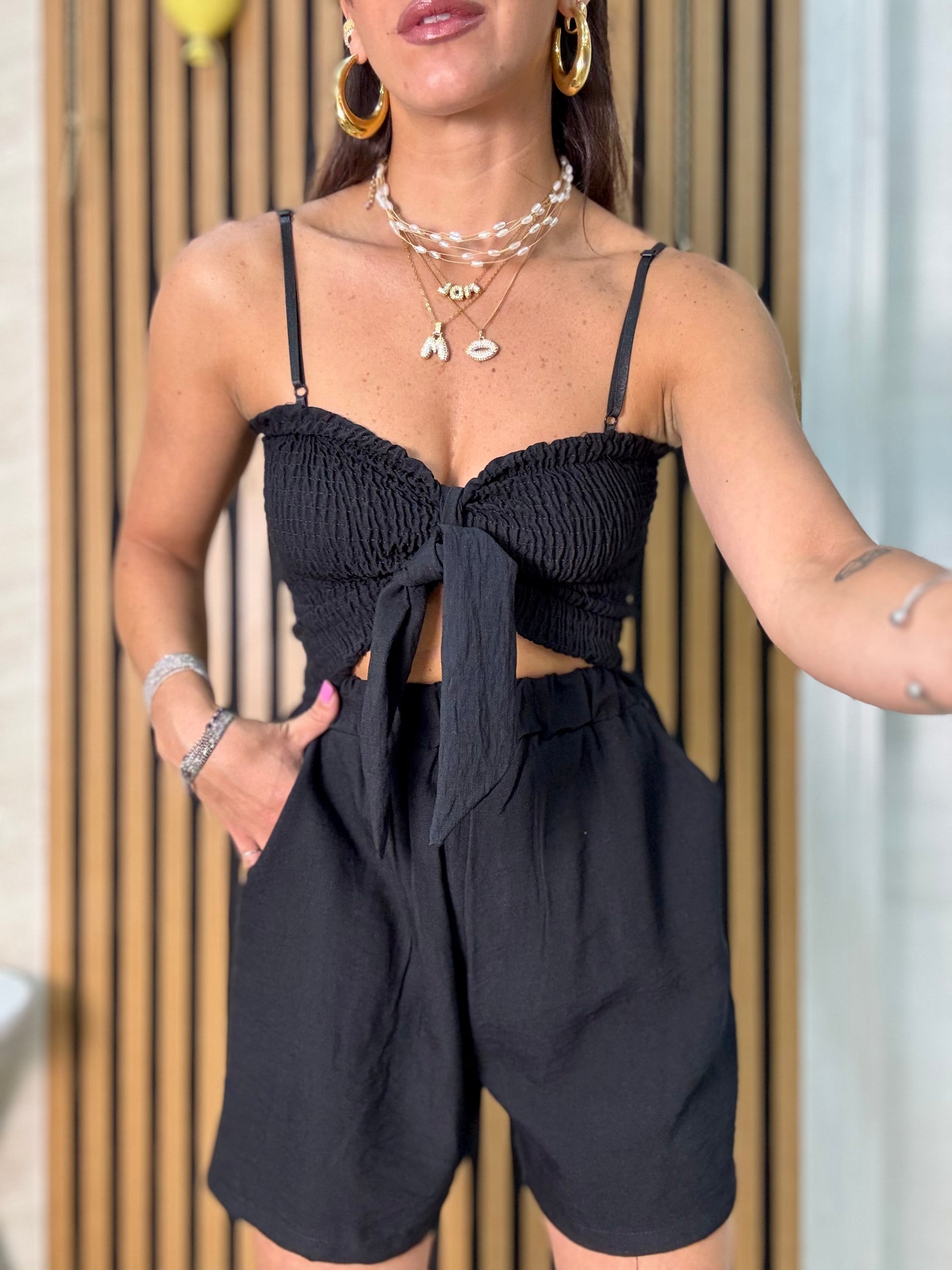 Set composto da bermuda con elastico in vita e fascia con effetto fiocco tg U X S entrambe i capi e vestiranno da una 40 ad una 46