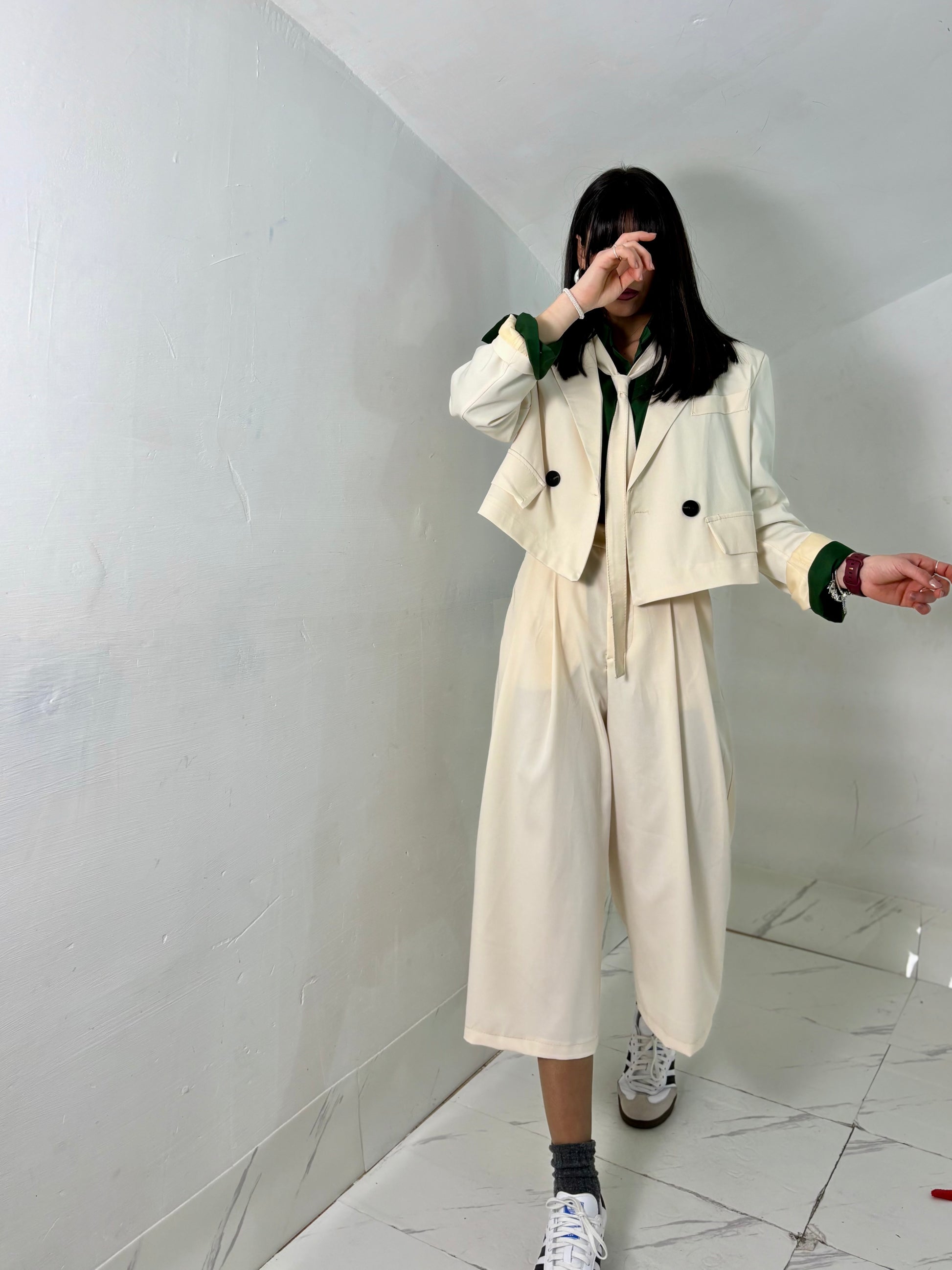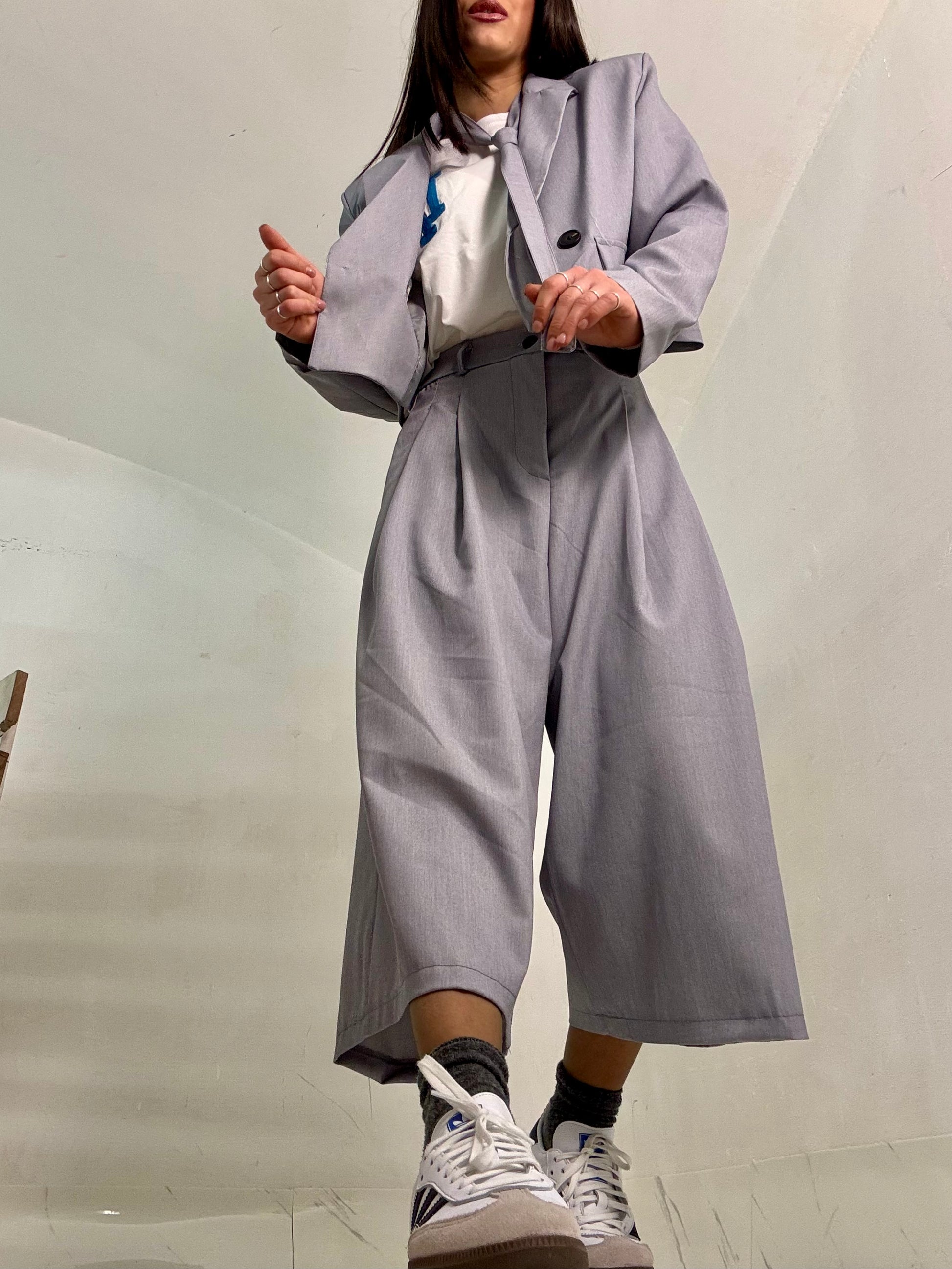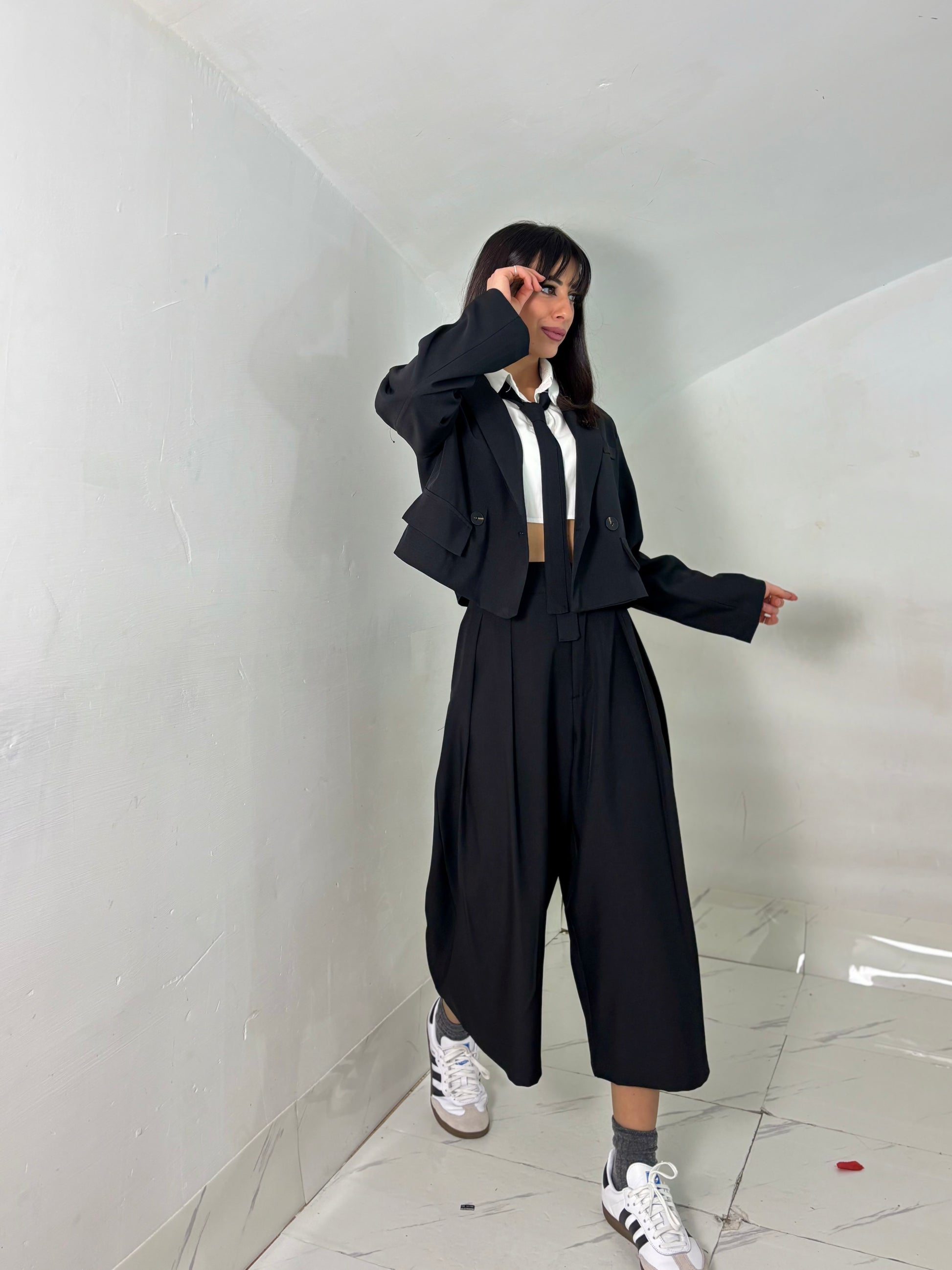 Set composto da giacca ampia corta , cravatta , pantalone bermuda tutto tg U veste fino ad una 44-46