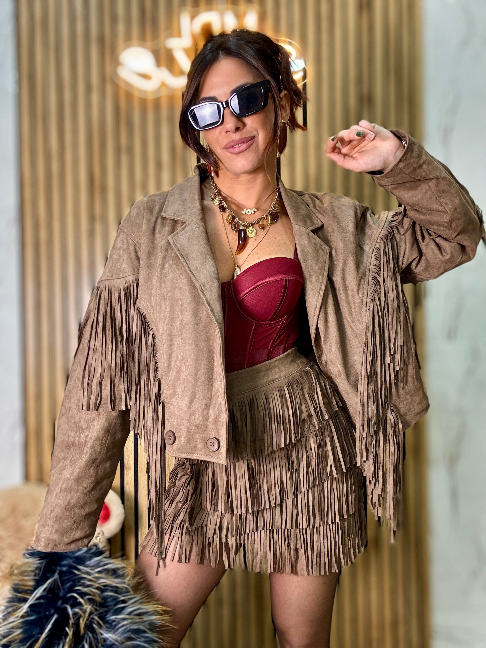 Set sfrangiato composto da gonna S M L e giacca tg unica che veste fino ad una 44