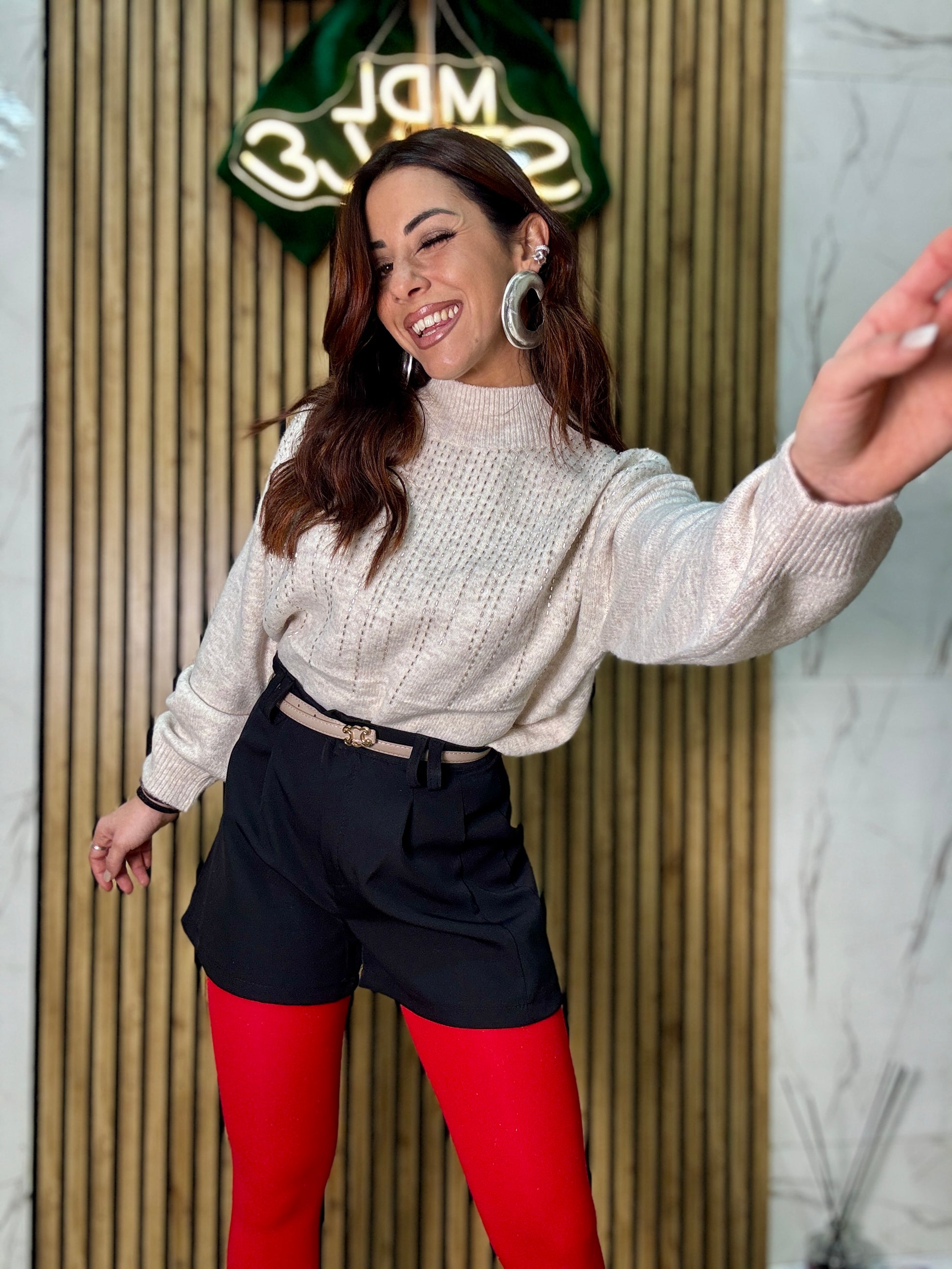 Pantaloncini in tessuto con dettaglio cucitura frontale, vita alta