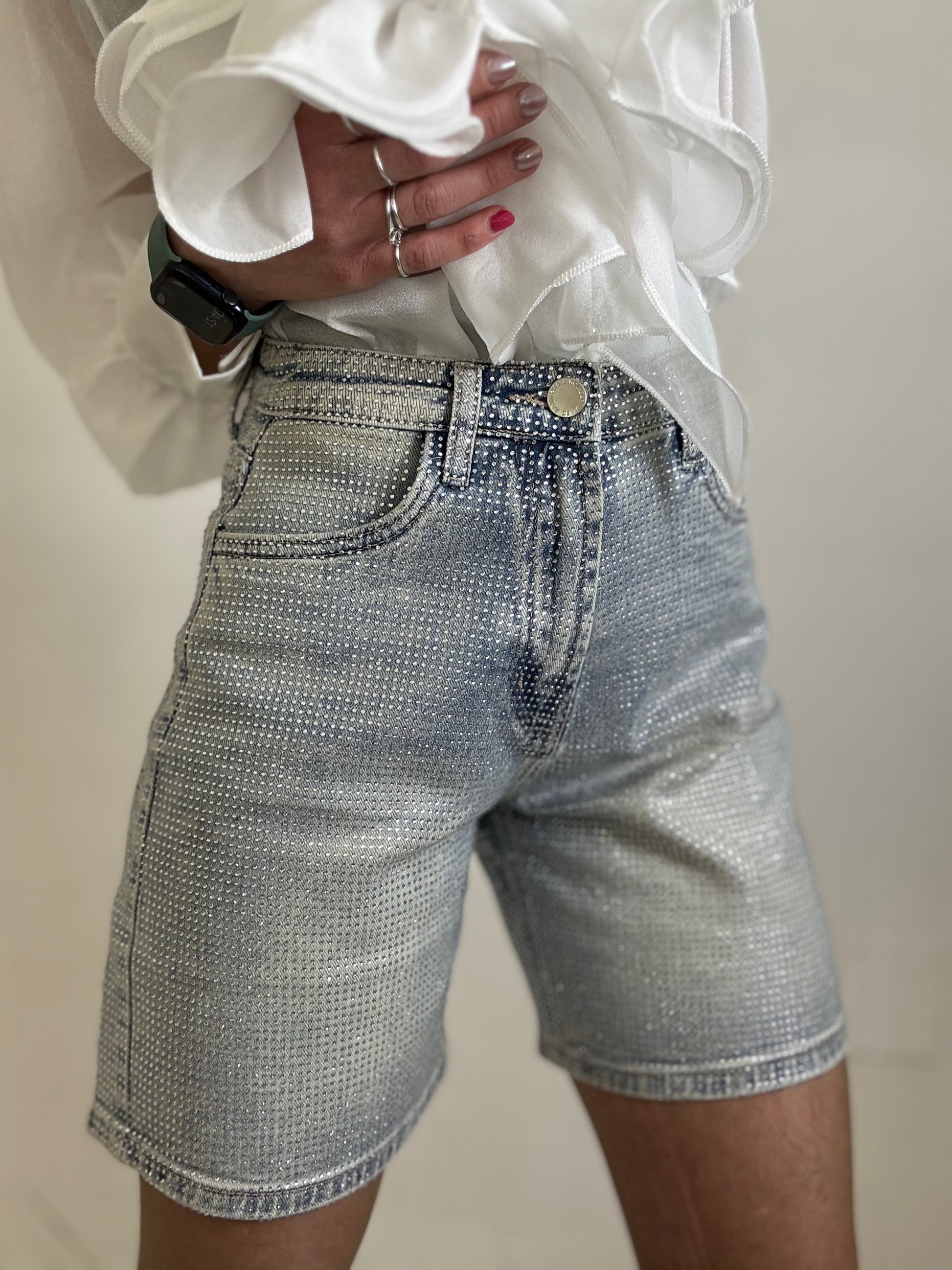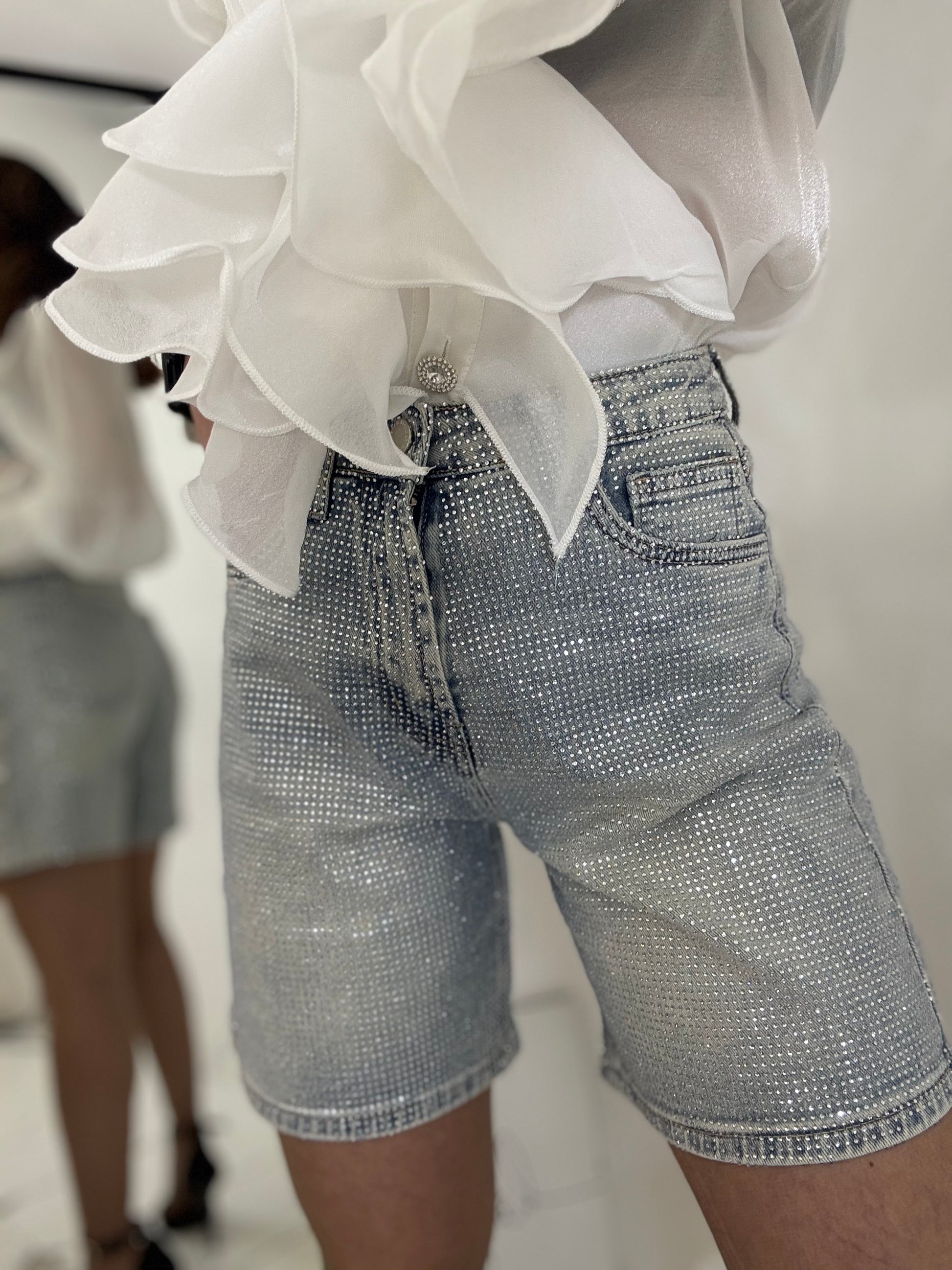Shorts regolare tg dritto completamente strassato vita alta vestibilità semi elastica