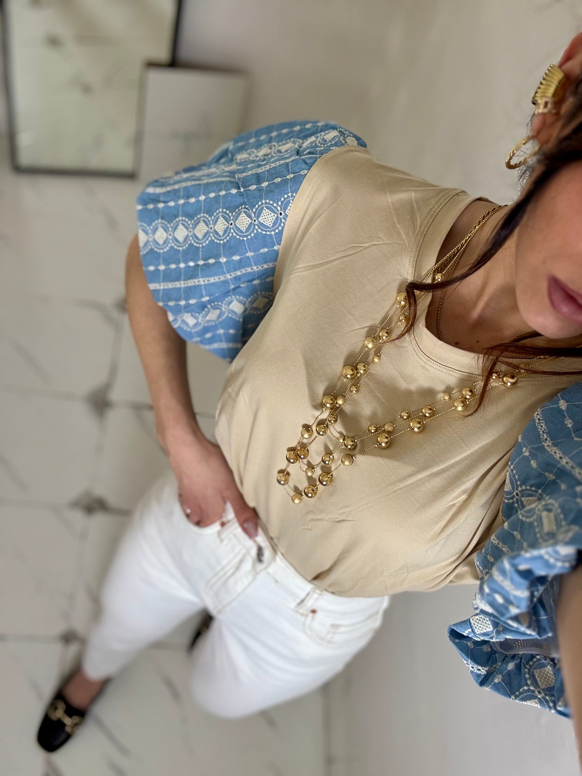 T shirt con mezza manica a palloncino in denim lunghezza regolare veste fino ad una 44-46
