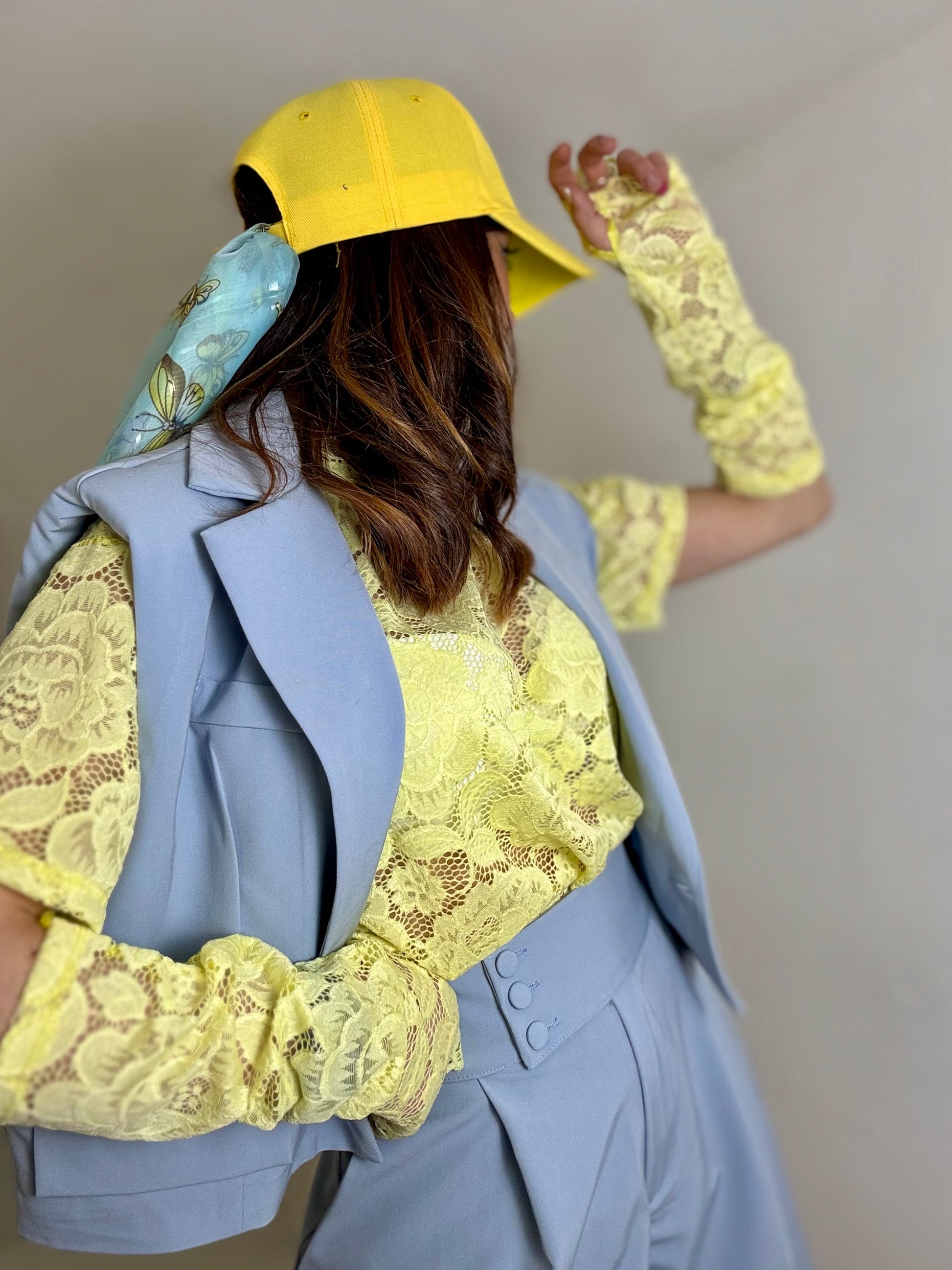 T-shirt, mezza manica in merletto con guanti compresi, taglia unica, veste fino ad una 46 abbondante