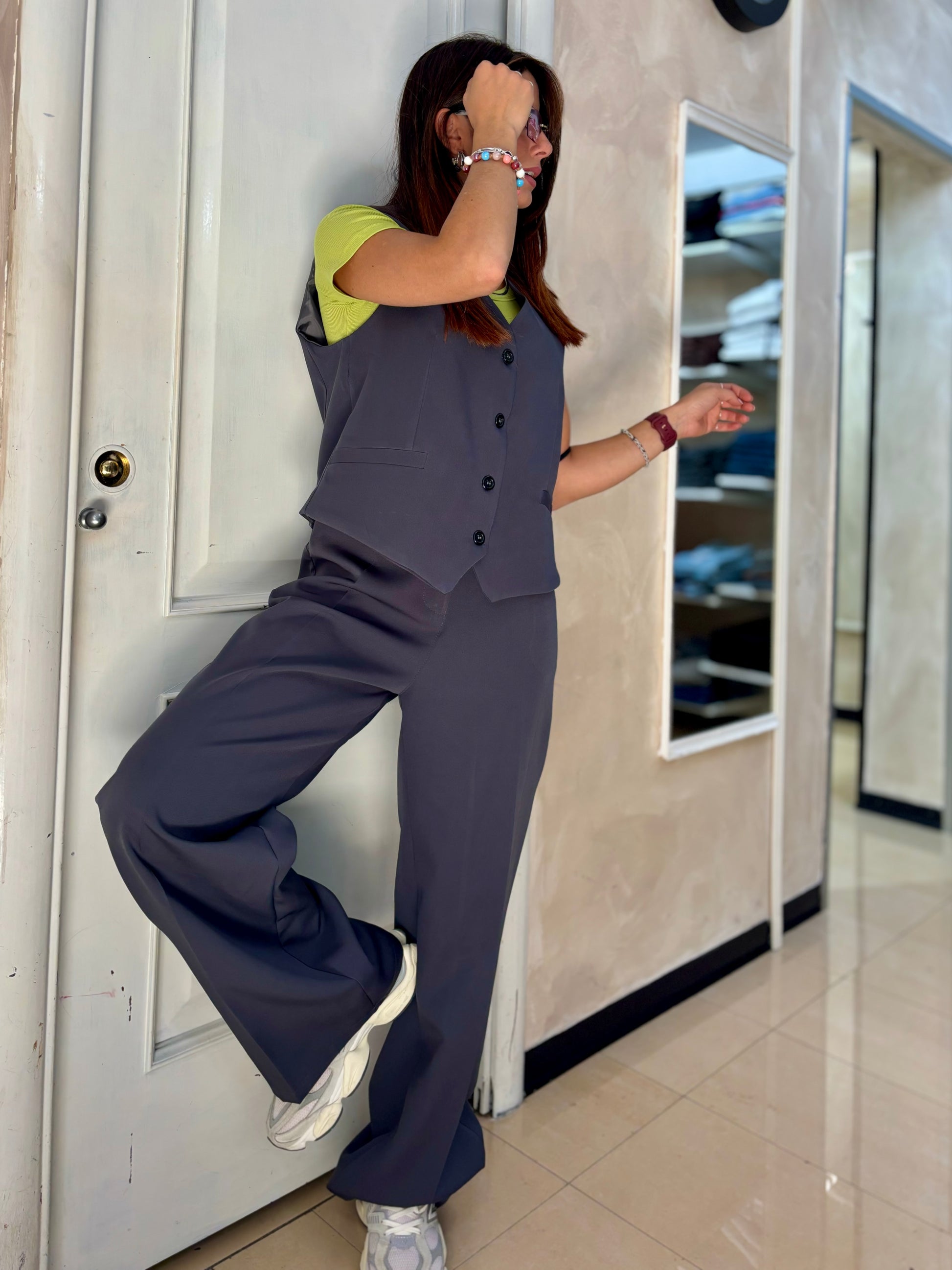 Tailleur comporto da pantalone con bottone frontali e molla dietro e gilet con bottoni frontali