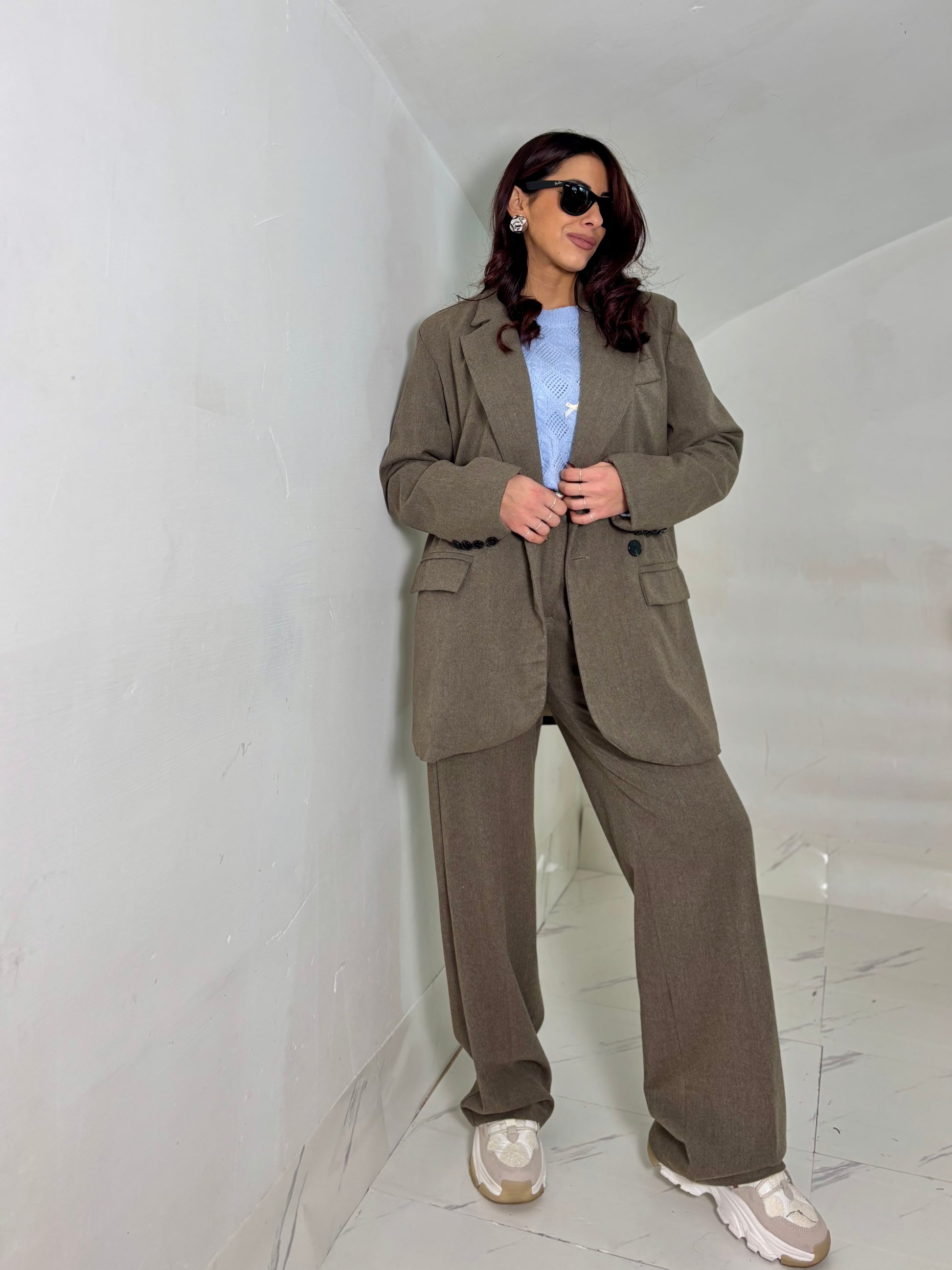 Tailleur classico sportivo composto da pantalone gamba dritta con elastico sul retro e giacca taglio normale veste fino ad una 44 abbondante