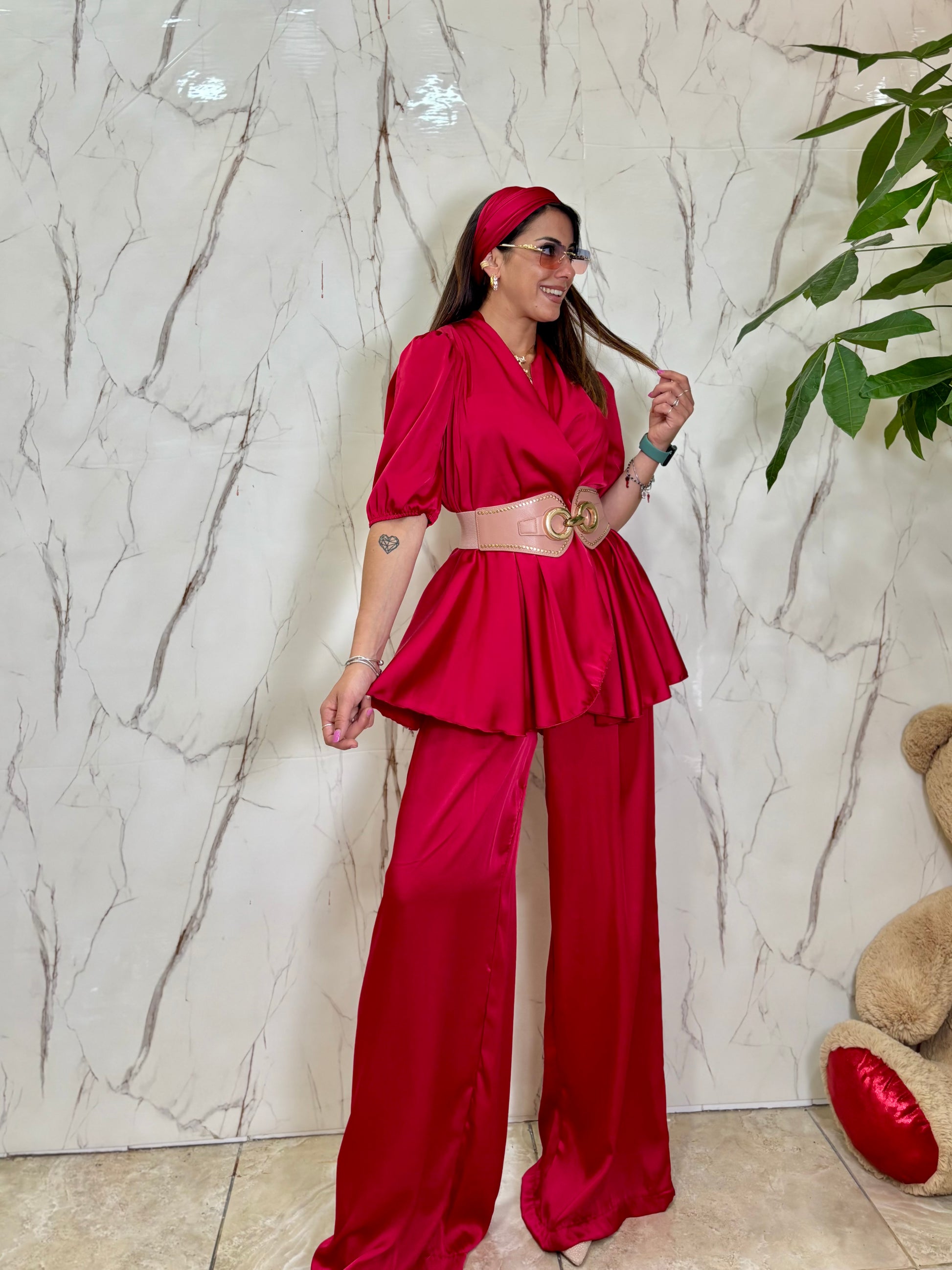 Tailleur composto da pantalone a palazzo e blusa con cintura entrambe tg U vestono fino ad una 46