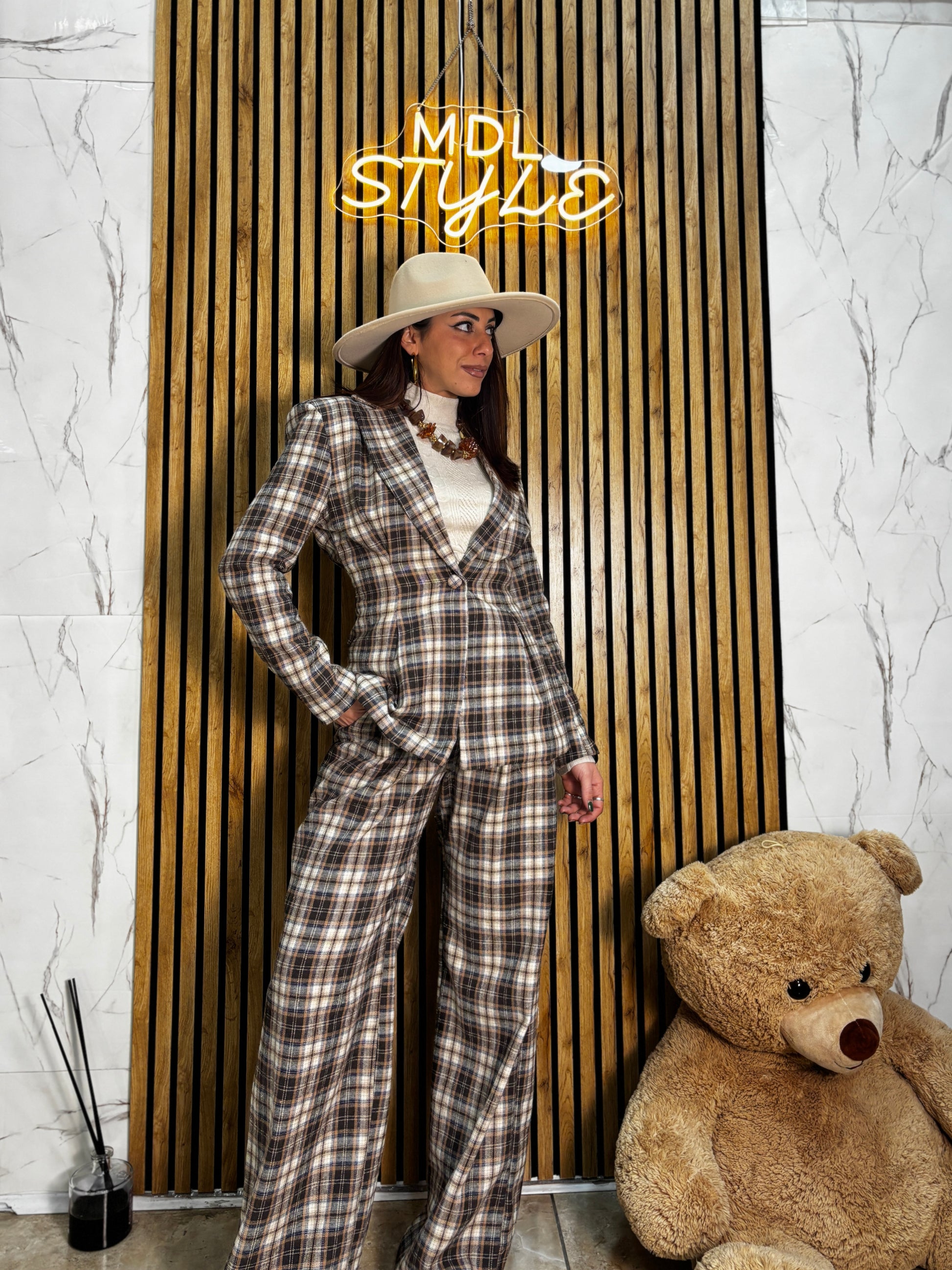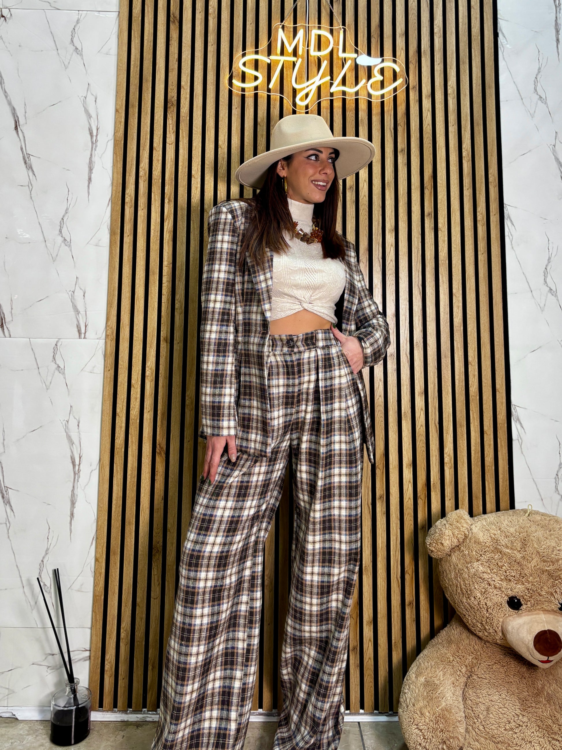Tailleur composto da pantalone a palazzo Con bottone e elastico, giacca abbinata, modello avvitato Taglia unica, veste fino ad una 44