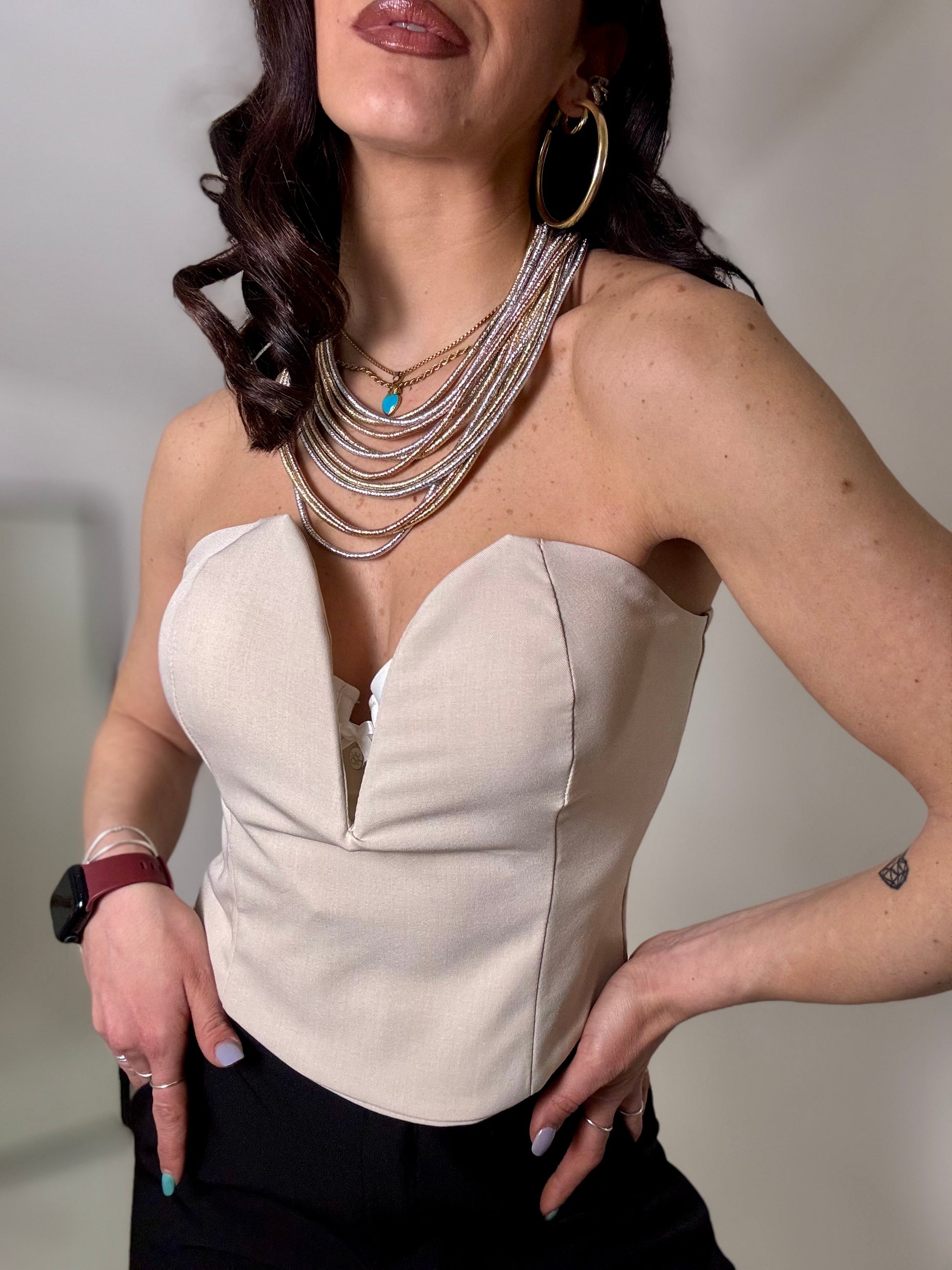 Toppa fascia con elastico dietro scollatura, vi vertiginosa coppe cucite, taglia unica, veste fino ad una 44