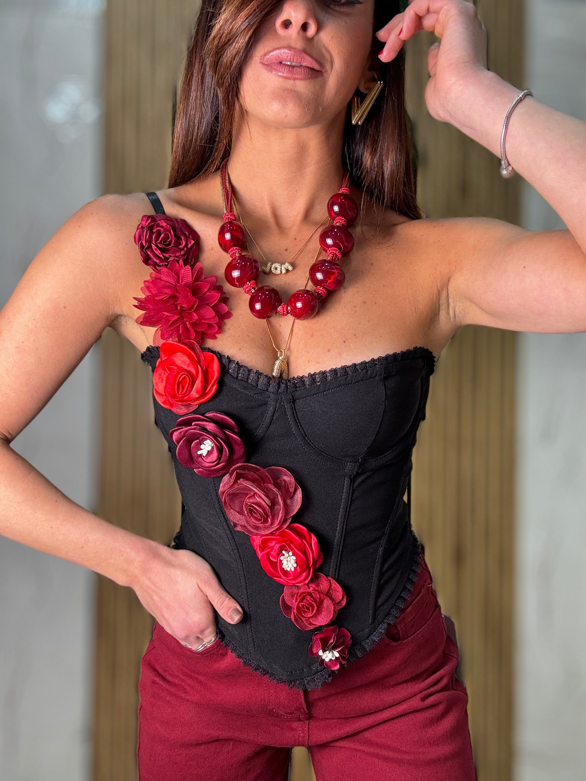 Top con applicazione di rose modello elastico tg U veste fino ad una 44