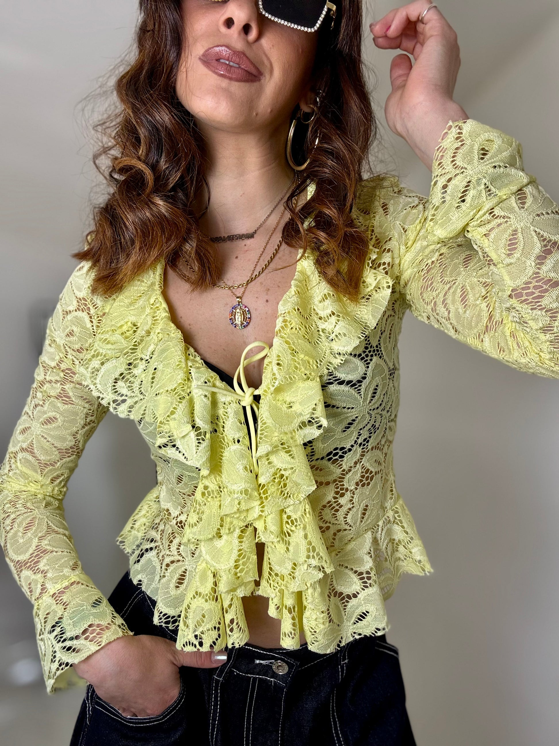 Top con chiusura laccetti frontali tessuto in merletto tg U veste fino ad una 46
