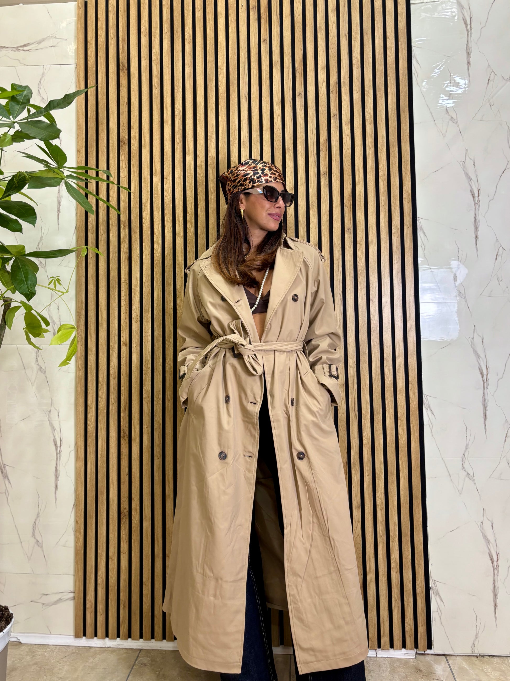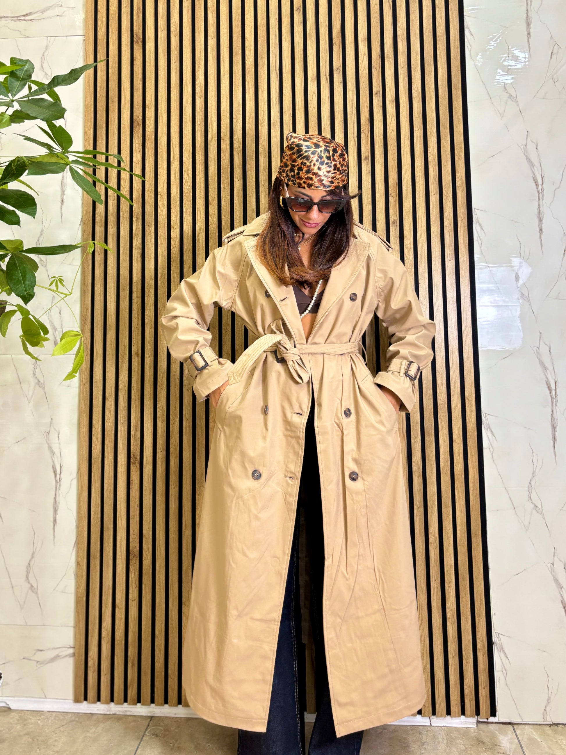Trench lungo con bottoni interni ed esterni con cinturino tg U veste fino ad una 46