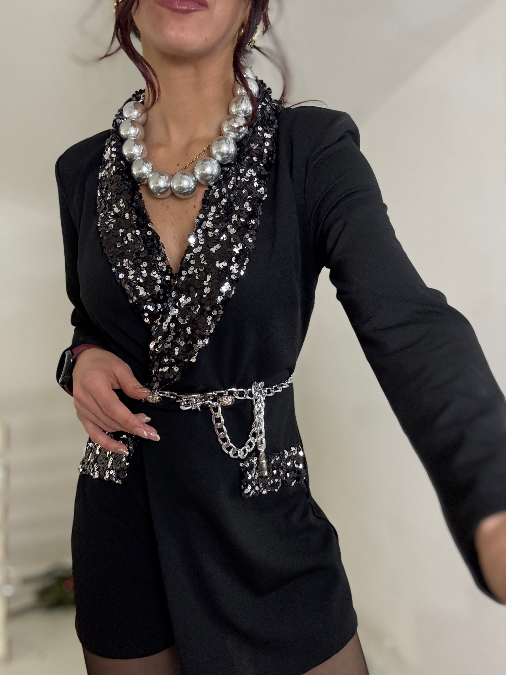 Tutina effetto Giacca con applicazione di paillettes tono su tono taglia unica, veste fino ad una 44