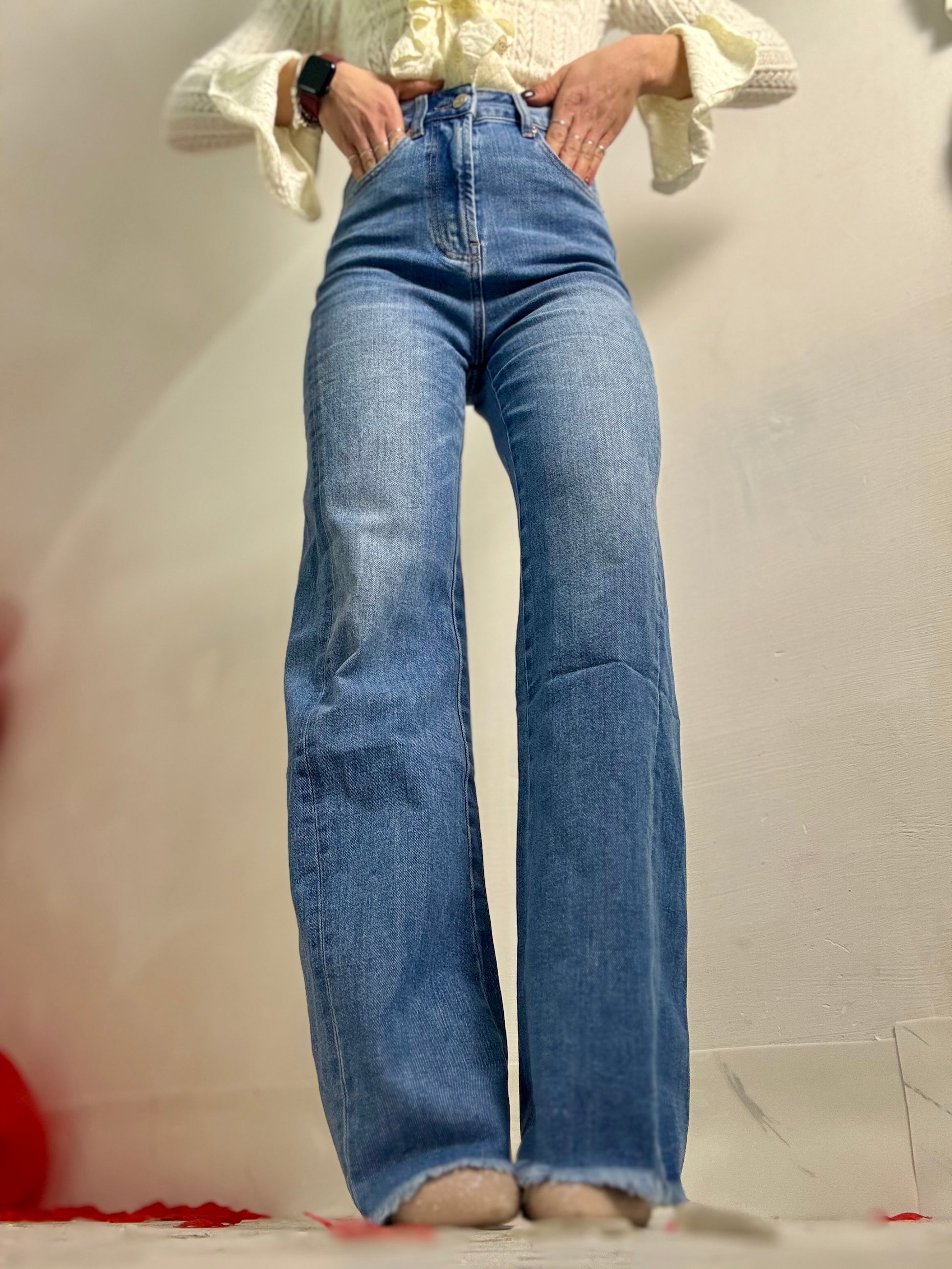 Jeans modella WIDE leg tessuto elastico vita altissima strutturato nei laterali