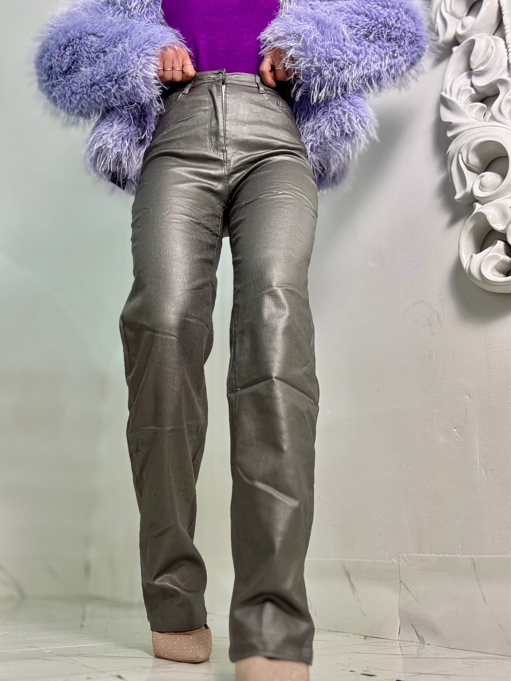 WIDE leg in ecopelle colore tortora metallizzato tessuto semi elastico